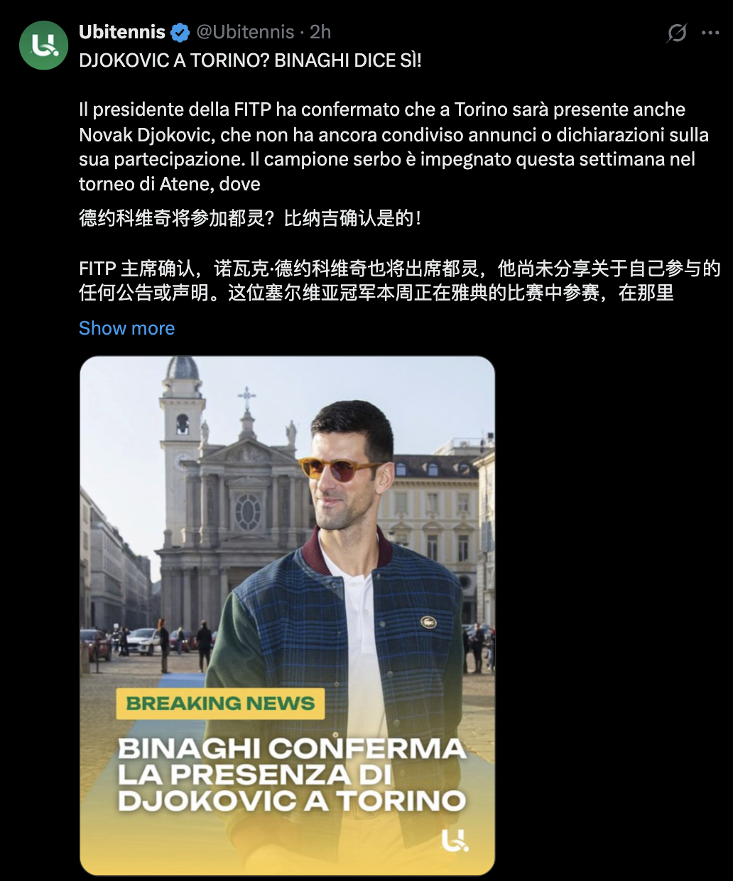 意大利网协主席透露,德约将参加今年的都灵ATP年终总决赛,静待本人官宣👏🏻