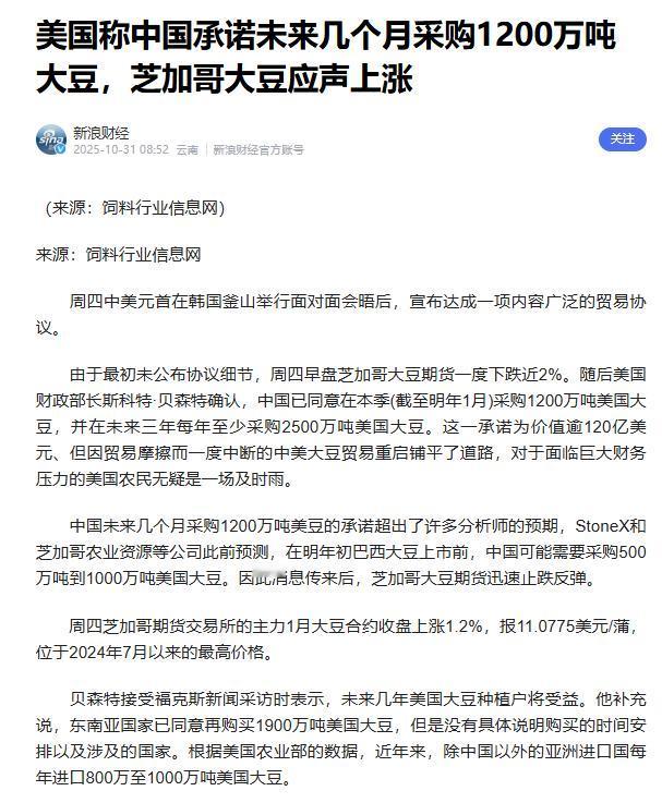 果然不出国人之所料,中方刚答应采购1200万吨美国大豆,美国贸易代表就通告全球,宣布要继续针对中国的301调查。 2025年上半年的美国大豆市场简直是一片愁云惨雾,历史第六高的收成遇上了中国这个最大买家的“零进口”,仓库堆得满满当当甚至塌了好几座,伊利诺伊州的农场主每英亩要亏100到200美元,只能靠政府补贴勉强保住祖传的土地。 中国这1200万吨采购单一落地,芝加哥期货交易所的大豆价格立马冲到15个月新高,而且中方还承诺了未来三年每年2500万吨的长期订单,这波操作直接让美国农业稳下心来。 可美国转头就把301调查的老套路搬出来了,这招早在2018年就试过,当时就没占到便宜,2025年还玩这套纯属自欺欺人。这次的调查盯着中国海事、物流和造船业,算盘打得全球都能听见:想靠收天价靠港费补贴自己衰败的造船业。 按他们2025年4月公布的新方案,到2028年之后,中国航运企业的10000TEU集装箱船单次靠港费能涨到756万美元,这费用能占到运价的53%,摆明了是想逼中国企业退出北美航线。 可他们忘了自己的造船业早就垮了,2024年全年才建成5艘大型商船,产能不足全球1%,造船成本还是亚洲国家的5倍,不靠讹诈根本没竞争力。 讽刺的是,美国农民早就被贸易战折腾得够呛。2018年关税战那会,美国大豆对华出口份额就从41%一路下滑,巴西趁机把份额涨到了79.9%,这些市场丢了就很难捡回来。 2025年上半年美国农场破产数量创下四年新高,化肥、农机价格涨得离谱,驱逐移民还导致劳动力短缺,特朗普政府喊着给150亿美元补贴,结果按法律上限只能给3.5亿,对450亿美元的农业损失来说就是杯水车薪。 威斯康辛州的啤酒厂因为关税成本涨40%被迫裁员20人,其他行业也跟着抗议,觉得政府在“挑选赢家”,这内部矛盾早就藏不住了。 美国贸易代表大概以为301调查是万能钥匙,却没算清中国早就不是任人拿捏的角色。2025年吉隆坡经贸磋商里,美方本来都答应暂停海事领域的301调查一年,结果刚拿到大豆订单就反悔,这种出尔反尔的操作只会砸自己的招牌。 要知道亚洲到美西航线35%的货物都靠中国航运公司或中国造船舶承运,真把中国企业逼走了,美国港口的货物周转都得卡壳,更别说靠港费的算盘也得落空。 其实美国大豆协会早就看得明白,他们8月给特朗普写信直言“我们要的是市场不是补贴”,可华盛顿的政客眼里只有霸权那点事。中国愿意买大豆是务实合作,毕竟国内的饲料、榨油行业需要原料,但这绝不等于跪着合作。 2024年中国从美国进口大豆才128亿美元,占总出口的25%,真要是断了合作,巴西、阿根廷早就等着补位,毕竟巴西93%的大豆出口都靠中国撑着。 美国要是真把301调查的措施落地,最后只会砸自己的脚。且不说中国能轻松转向其他供应国,单说美国农业离了中国市场就得崩盘——每年千百亿美元的靠港费就算能收到,也补不上大豆出口的窟窿,更救不了那些快破产的农场主。 这种一边啃着中国给的面包,一边挥着棍子打喂面包的手的操作,说到底就是霸权思维没转过来,真等中国彻底转向其他供应国,再想把订单抢回来可就没那么容易了。