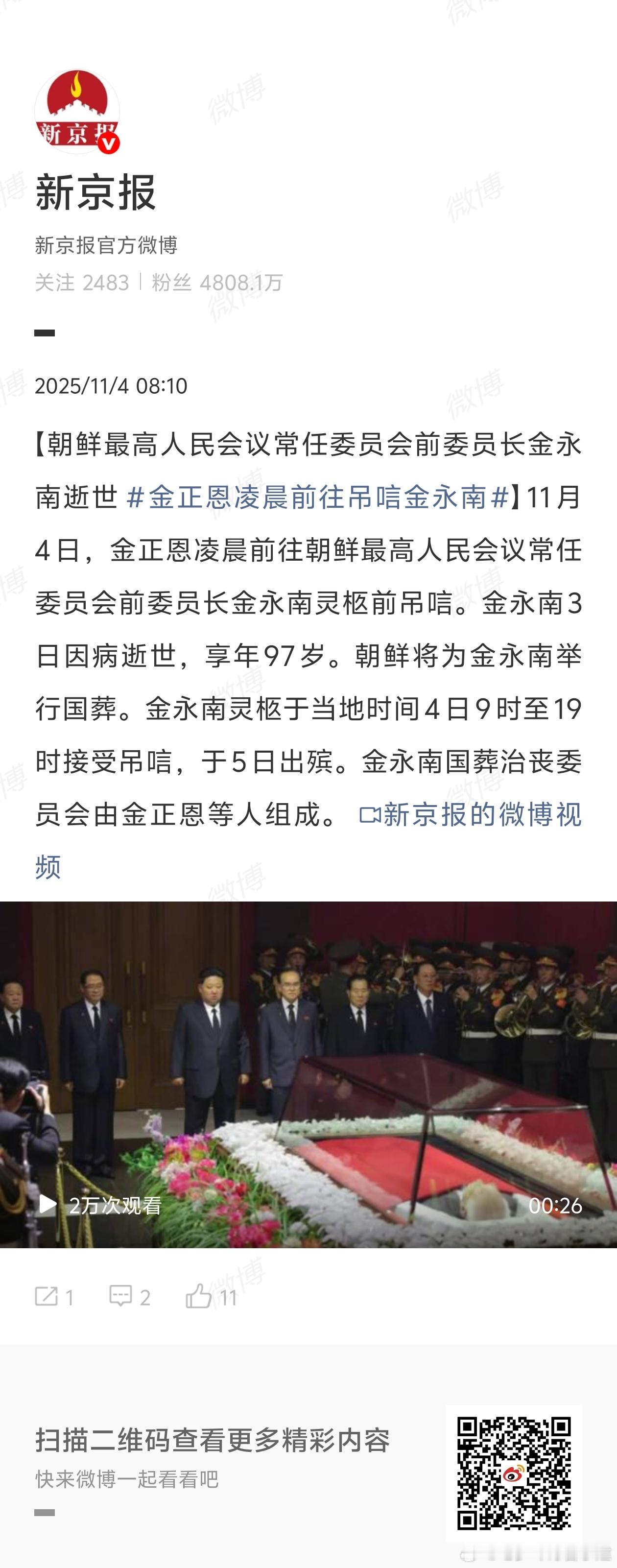 金永南逝世