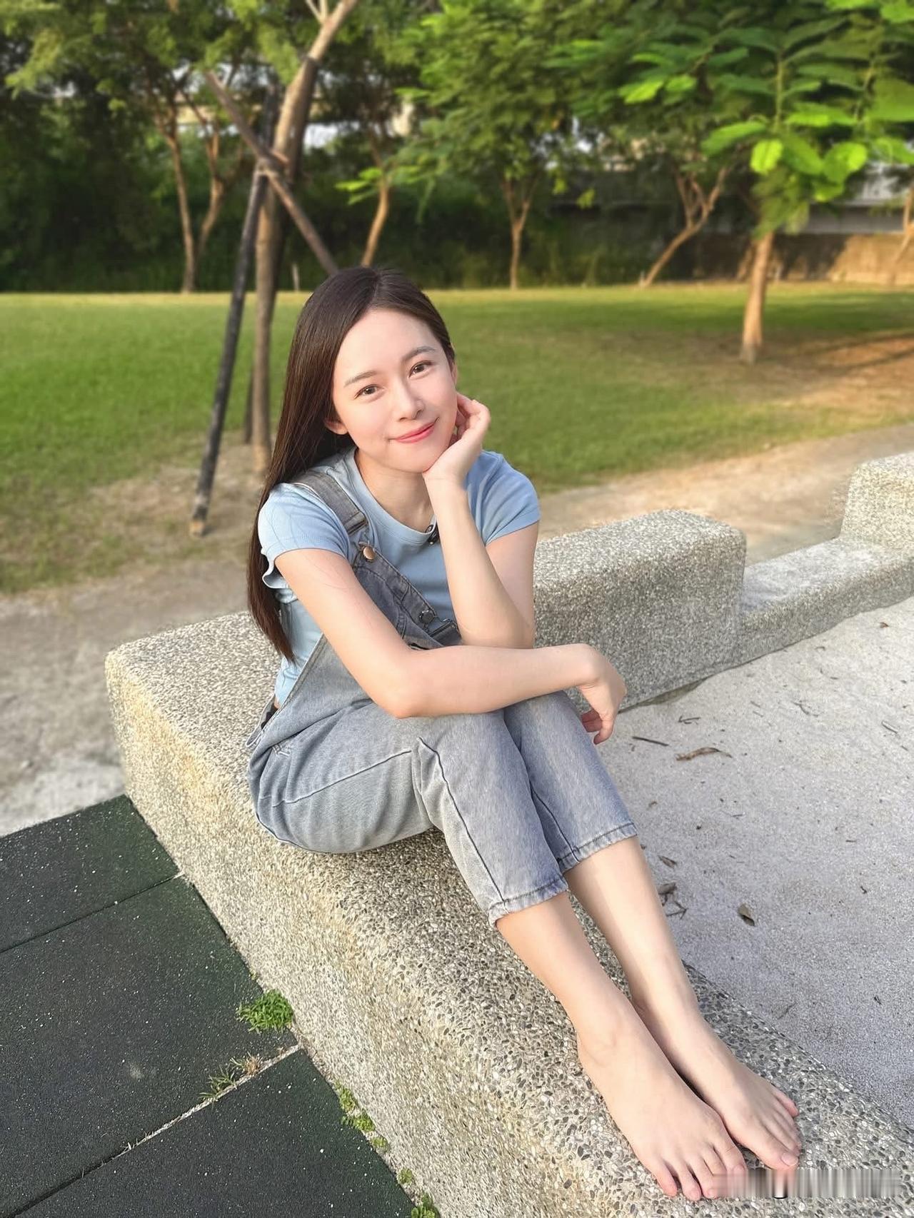 夏日午后,阳光下的少女,静坐绿意盎然的公园长椅上,微笑着享受宁静时光。