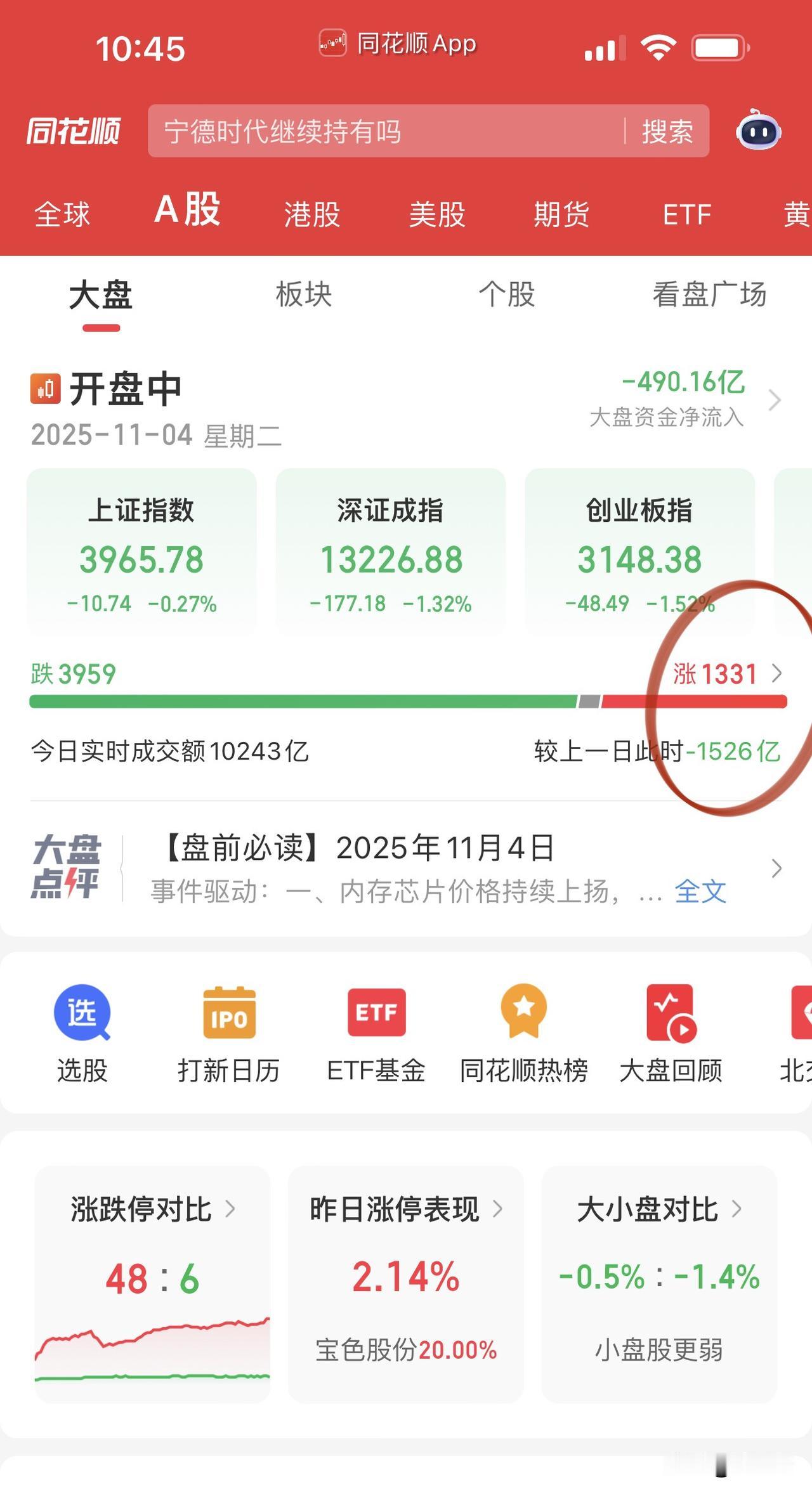 上午盘走势比较不理想: 又是“银行拉冒烟、指数跌无边”的套路。 海外算力、国产科技早盘略微表现, 中际旭创、寒武纪、中微公司有表现, 归根结底还是跟了美股科技节奏! 资金并没有选择高低切换, 而是选择银行高股息躺平至年底业绩考核。 生肖“马”再次全面异动, 游资的主场回归, 按说游资进入年底造妖股的阶段了, 不知今年会花落哪个板块…