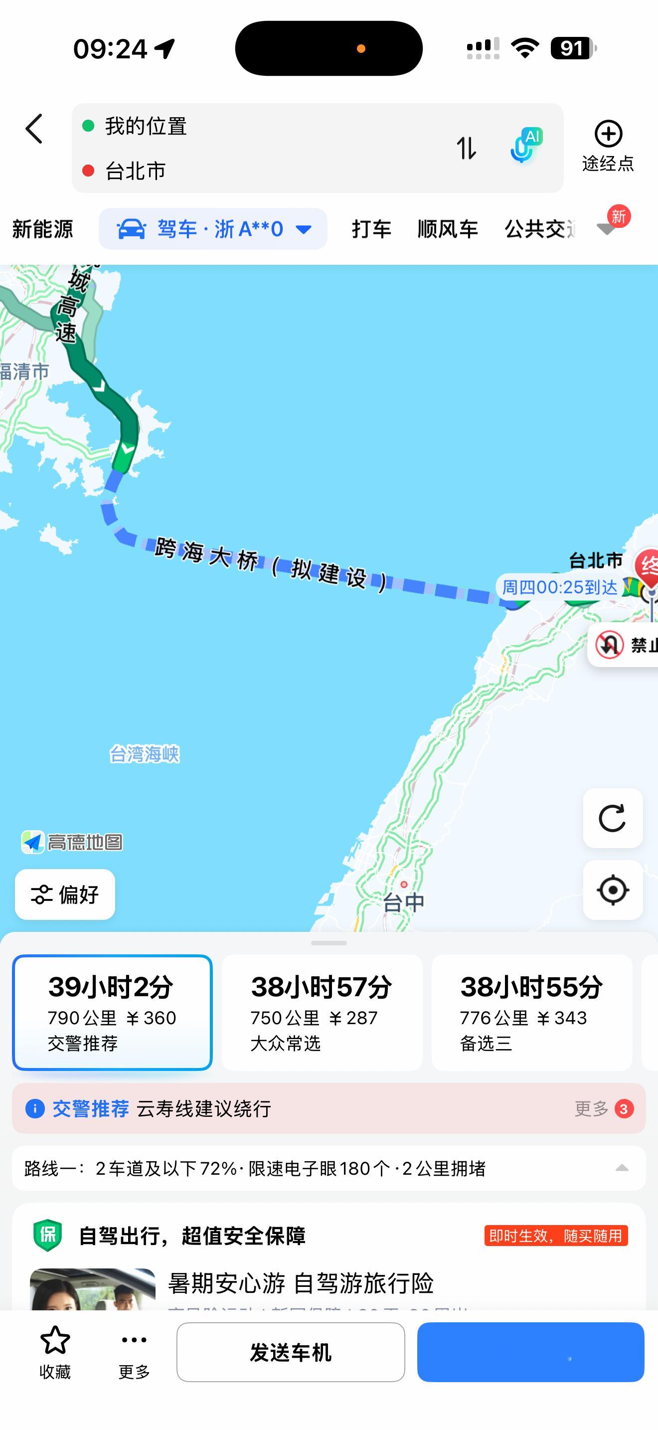 台湾省可以用高德导航了浙江可以直接导航到台湾了!跨海大桥也在拟建中了,所以是不是用不了多久就可以在台湾环岛自驾游了[doge][doge][偷笑]