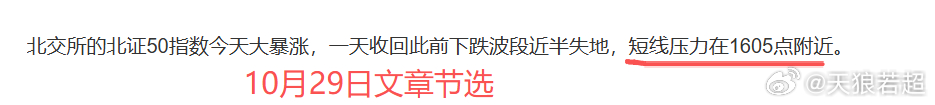 我认为【不顶着压力位买入】,是中小投资者最基本的常识。比如过去两三天,北证50指数总是在压力位附近遇阻,如果顶着压力位买入,那么今天就看到北证50的下跌。用资金突破重要压力位这种大事,还是让那些大资金去干吧。