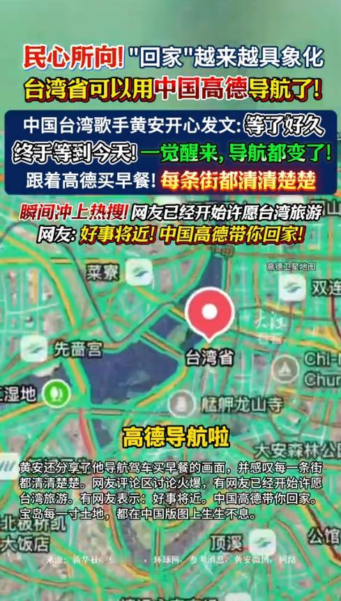 民心所向!“回家”越来越具象化!以前在台湾省开车,只能用苹果的谷歌地图,但是,知名歌手黄安这次回到台湾省,由于习惯,他直接打开高德地图,他本能的想关掉切换谷歌,结果,高德居然也可以导航了!而且提供的信息,和在大陆一模一样,连附近的便利店和停车场都标注得明明白白。 据今日芜湖11月3日报道,这事儿得从歌手黄安的一次亲身经历讲起。他近期回到台湾,因为在大陆生活久了,许多习惯都随之改变。 一次开车出门,他需要导航,便下意识地点开了手机上最常用的高德地图,刚一打开,他自己就先反应过来,心想这里是台湾,高德地图的数据和服务可能覆盖不到,正准备切换成当地人常用的谷歌地图。 可就在他手指即将滑动的瞬间,屏幕上的景象让他停住了,那熟悉的蓝色导航路线竟然顺利规划了出来,定位信息准确无误,系统运行也十分流畅。 这一发现让他感到非常意外,要知道,过去很长一段时间里,在台湾地区使用导航软件,选择十分有限,体验也并非完美,有时还会遇到定位偏差或信息更新不及时的问题。 他带着这份好奇,没有立即关闭软件,而是把地图界面放大,仔细查看上面的细节,结果让他更加惊讶,这不单单是“能用”的级别。 从台北的繁华主干道,到南部乡间的不知名小路,地图上都进行了清晰的标注,他尝试着搜索了一下周边的生活设施,比如便利店、银行和停车场,发现这些信息也一应俱全,并且准确度很高,使用感受与在大陆任何一个城市几乎没有差别。 黄安当时那股激动劲儿根本憋不住,立马拍了个视频发到网上,那语气里的自豪感都要溢出屏幕了,这就像往平静的湖里扔了一颗炸雷,瞬间引爆了网络。 无数网友抱着半信半疑的态度,纷纷掏出手机,点开高德地图,结果,整个评论区都沸腾了!“我X,真的可以!定位比谷歌准多了,连我家门口那条狗才能找到的小路都有!” “我刚试了,从基隆到垦丁,全程都能导,信息比台湾本地的导航还全!” “这感觉太奇妙了,就像突然发现自己家后院的门锁,原来早就被自家人换了一样!” 这些来自普通台湾网友的惊叹,比任何官方宣告都更具冲击力,那一刻,无数人真切地感受到,一种无形的力量,已经跨越了海峡,融入了他们最真实的生活。 这件事带来的震撼,绝不仅仅是方便了出行这么简单,你想想,一个导航软件背后是什么?是庞大到你无法想象的地理信息数据! 高德能在台湾做到如此精细的覆盖,意味着宝岛的每一寸土地,每一条毛细血管般的道路,都已经被我们精确地数字化,尽在掌握。 就在这事发生前不久,咱们的“吉林一号”卫星才刚从太空给我们传回了台湾的高清“写真集”,山川河流,城市脉络,一览无余,而现在,高德地图就像是给这幅宏伟的画卷配上了一个超高倍的显微镜,把每一条街道、每一栋建筑都拉到我们眼前,让你能“身临其境”。 从万米高空的俯瞰,到贴地而行的导航,这一套天罗地网般的组合拳打下来,传递的信号已经不言而喻——所谓的“海峡天堑”,在绝对的科技实力面前,早已不成阻碍。 这下子,岛上那些整天做着“独立”大梦的人,彻底坐不住了,他们过去总觉得,隔着一道海,就能关起门来为所欲为,就能自欺欺人地编造谎言。 可现在他们的一举一动,他们开会密谋的大楼,甚至他们晚上吃宵夜的夜市摊位,大陆这边的导航软件都可能比他们自己还清楚。 那种感觉,就像一个以为自己躲在暗处的小偷,突然被一束强光照在脸上,所有的伪装和侥幸瞬间被撕得粉碎,只剩下赤裸裸的恐慌和绝望。 网上有个评论说得特别扎心:“以前他们以为自己是躲在迷宫里的老鼠,现在才发现,自己不过是在一个透明玻璃缸里表演杂耍的仓鼠。” 这种被彻底看穿的“透明感”,带来的心理压力是毁灭性的,这也让之前那个叫嚣着“解放军来了可以把路口全变红灯”的于北辰之流,彻底沦为了一个天大的笑话。 我们连你家后门的小路都一清二楚,你还指望用红绿灯来阻挡历史的车轮?简直是痴人说梦!说到底,一个导航APP的更新,看似只是一个不起眼的技术进步,但它却像一把锋利的尖刀,狠狠地刺破了“台独”势力编织了几十年的虚幻泡沫。 它让两岸所有中国人,都用一种最直接、最生活化的方式感受到:我们,本就是一家人。 当两岸的同胞用着同样的软件,看着同样的地图,为同样的便利而会心一笑时,那种血脉相连的民族认同感,是任何政治操弄都无法隔断的。 国家统一,是历史的大势所趋,更是14亿中华儿女刻在骨子里的共同期盼,从卫星到导航,这些不再是冰冷的科技,而是我们迈向团圆的坚实脚步。 当科技的力量让海峡两岸的距离变得如此之“近”,当融合的便利让同胞的心贴得越来越紧,统一的号角,已然吹响! 信源:今日芜湖2025-11-3