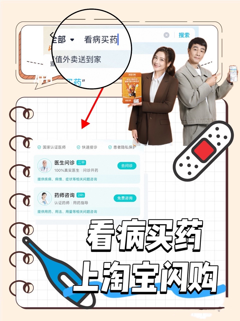 其实看病没有想象中麻烦 看病买药上淘宝闪购 小病告别医院排队焦虑!上淘宝闪购搜「看病买药」至高可得12元新人健康红包,太香了~不仅有在线专家问诊,社恐不用怕面对面;最快19分钟送药上门,省时又省心;还支持全国多城医保买药,买药更实惠!陈小春、应采儿代言,安全感直接拉满,有就医买药需求的可以来淘宝闪购!淘宝闪购买药 陈小春应采儿淘宝闪购医药健康代言人