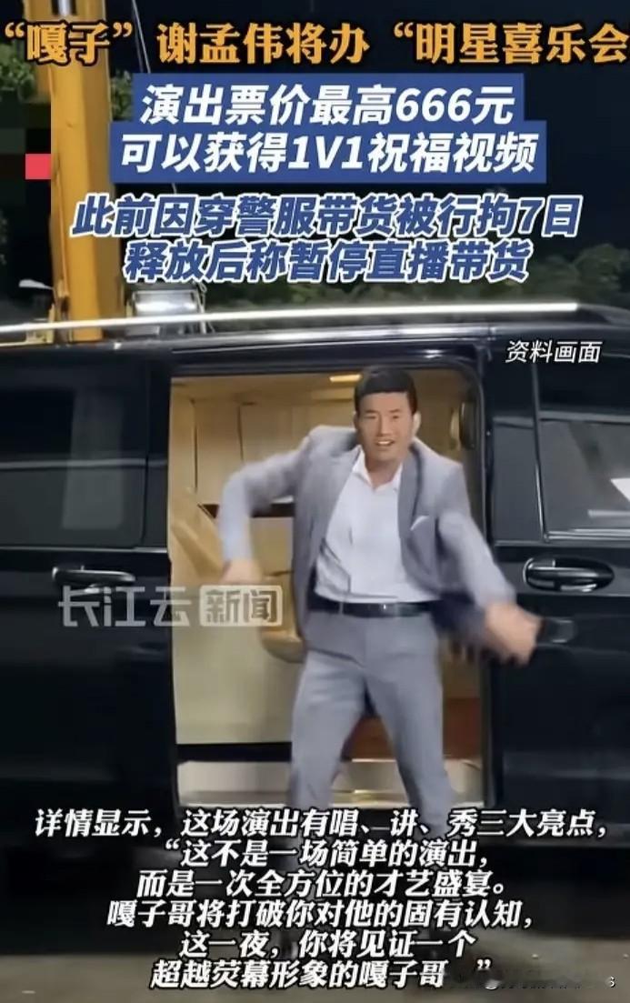 真的是老话没说错,流氓不客气,就怕流氓有文化! ‘嘎子’谢孟伟再次刷新了大家的想象力,他现在不是不能直播带货了嘛,现在改行准备办个人才艺表演了! 虽然说,他不是歌星出身,但是呢高低还是可以整两句的,此次他打算在才艺表演上,通过各类表演来展示自己各个方面的优秀能力! 同时呢,也是希望可以通过此次才艺表演,可以让所有人认识一个全新的‘嘎子’!