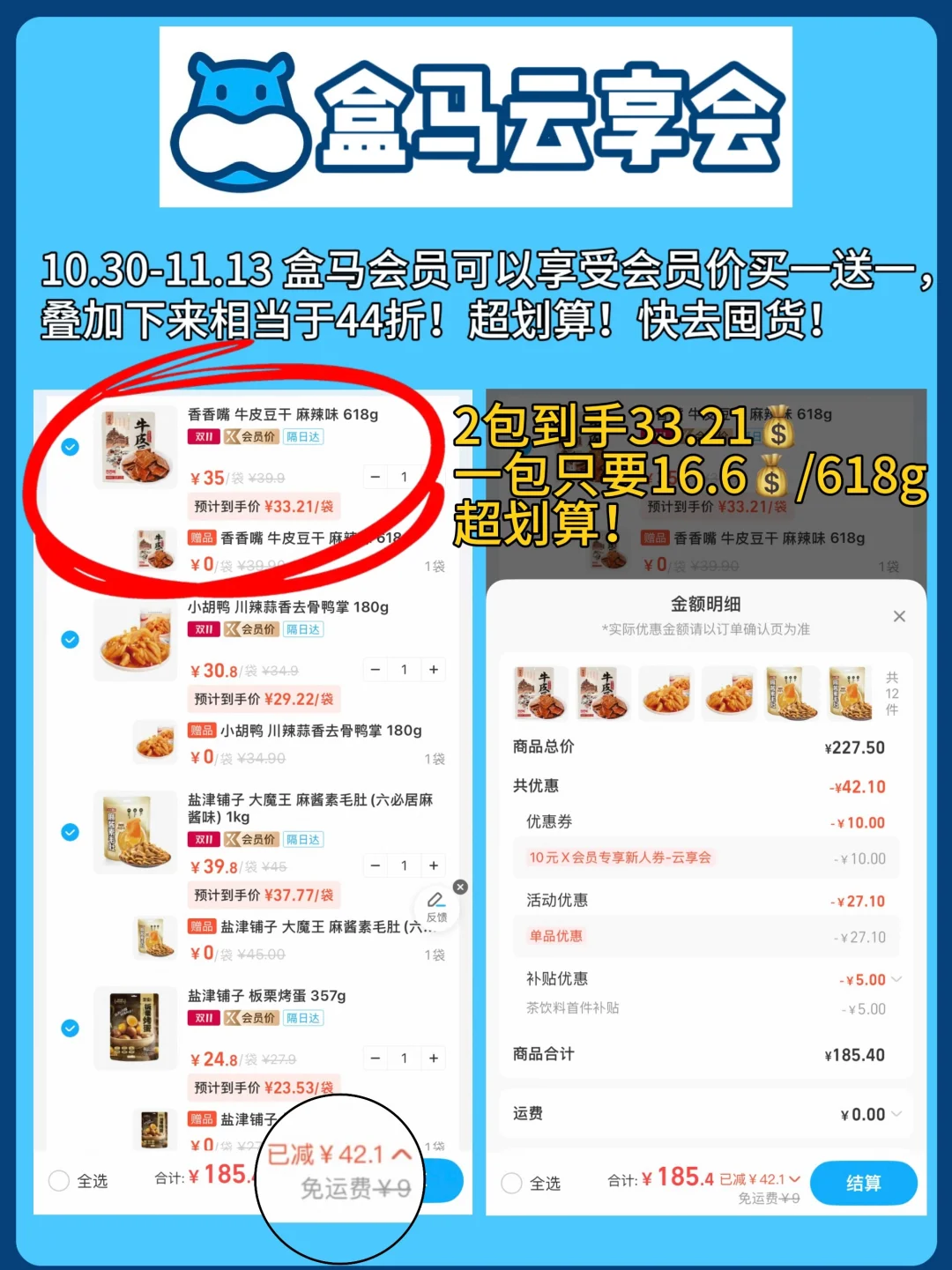 作为盒马常年回购党,这波双11活动真的挖到宝了!整理了超全购物清单,照着买省到大出血,闭眼囤不踩雷~