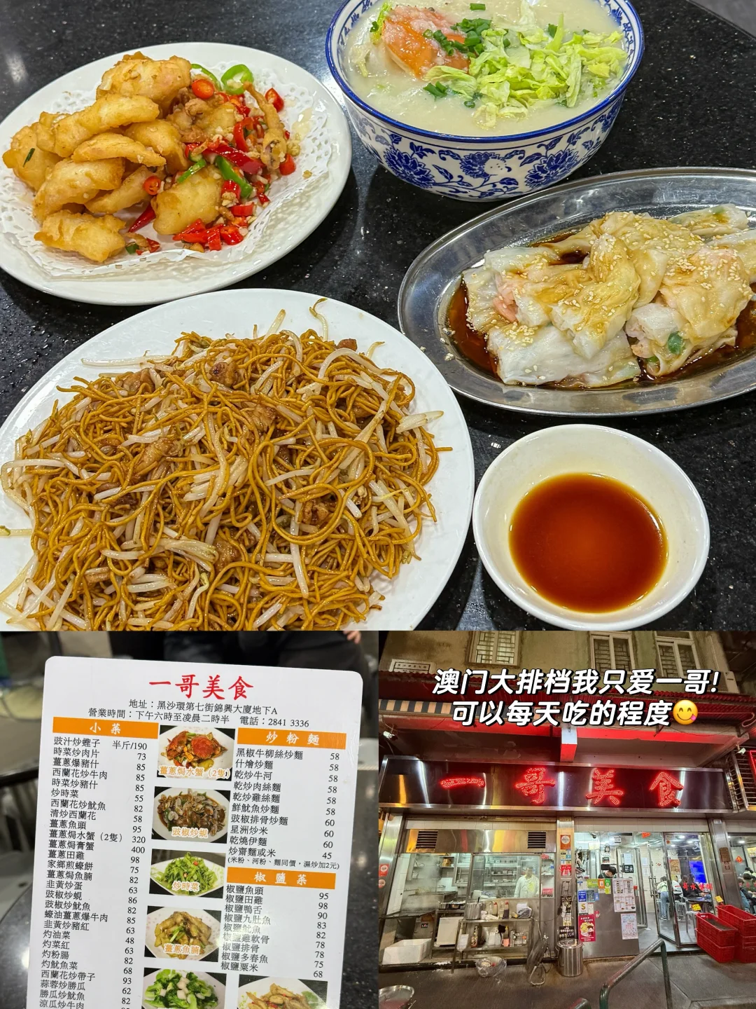 2. 来澳门吃了让我日思夜想的一哥! 虽然主打水蟹粥🦀, 但现做的肠粉,炒面, 椒盐鱿鱼都是我的爱! 愿意n刷的大排档夜宵店😭🔥锅气max而且开到凌晨2-3点