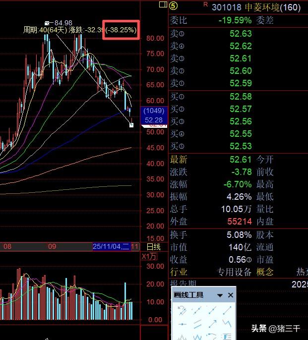 液冷龙头之一已经步入大熊市! 申菱环境三季报后加速下跌, 目前股价至高点回落近4