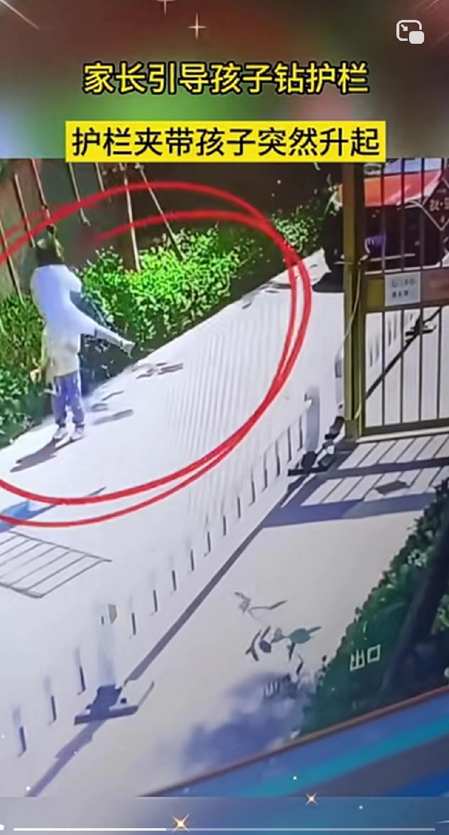 这个妈妈不靠谱,带孩子钻护栏,结果孩子被升起的栏杆吊挂在空中。妈妈想把孩子抱下来,无奈太高,干着急没办法。这妈妈真可恨,孩子跟着受罪。 从视频里看,女子带着两个男孩外出,奇怪的是他们没有走人行通道,而是选择汽车走的路,栏杆本是拦车的,结果把他们拦住了。第一个孩子顺利通过,第二个孩子刚把脑袋伸进去,栏杆忽然升起,孩子的脑袋卡在缓慢升起的栏杆上,身子半挂在空中。凑巧的是,这个孩子偏偏选了一个最窄的地方钻。 事发突然,女子懵了,看着孩子左右摇摆的身体,着急得又喊又叫。她试图将孩子抱下来,可孩子头被卡在已变窄的栏杆里,高高挂起,女子根本使不上劲。 孩子被夹得又疼又喘不上气,双脚不住扑腾。 一个男子飞奔过来,用力将栏杆拽下来,栏杆空隙变大,才将孩子救出来。 短短几秒钟,孩子在鬼门关转了一圈,女子应该再不敢做这种事了。男孩本就调皮,可能想另辟捷径,女子母爱爆棚,为满足孩子要求,忽略了安全措施。又或者是女子想给孩子惊喜,不走寻常路,引导孩子钻栏杆。没想到这个时候来了汽车,系统识别,栏杆自动升起来。 栏杆升起的速度不快,可伤害性大。它不是人操作,说停就停。系统一根筋,不会因为夹住孩子,停止动作。所幸汽车司机反应迅速,立刻下车展开营救。 女子抱着孩子,大概后脊背都发凉。一个小小的疏忽,差点酿成大祸。 有人说,这要是出了事,女子绝对不怪自己,物业和保安就得背锅。 大部分地方门岗有看守,偏偏娘仨挑了个无人看守的地方冒险。不管有没有人看守,都要遵守规则。平时这些东西看着人畜无害,突然启动就成了陷阱。 女子也要吸取教训,多反省自己,不要出了事,怪这个怪那个。无论怪哪个,疼的都是自己。 资料:三农帮融媒体