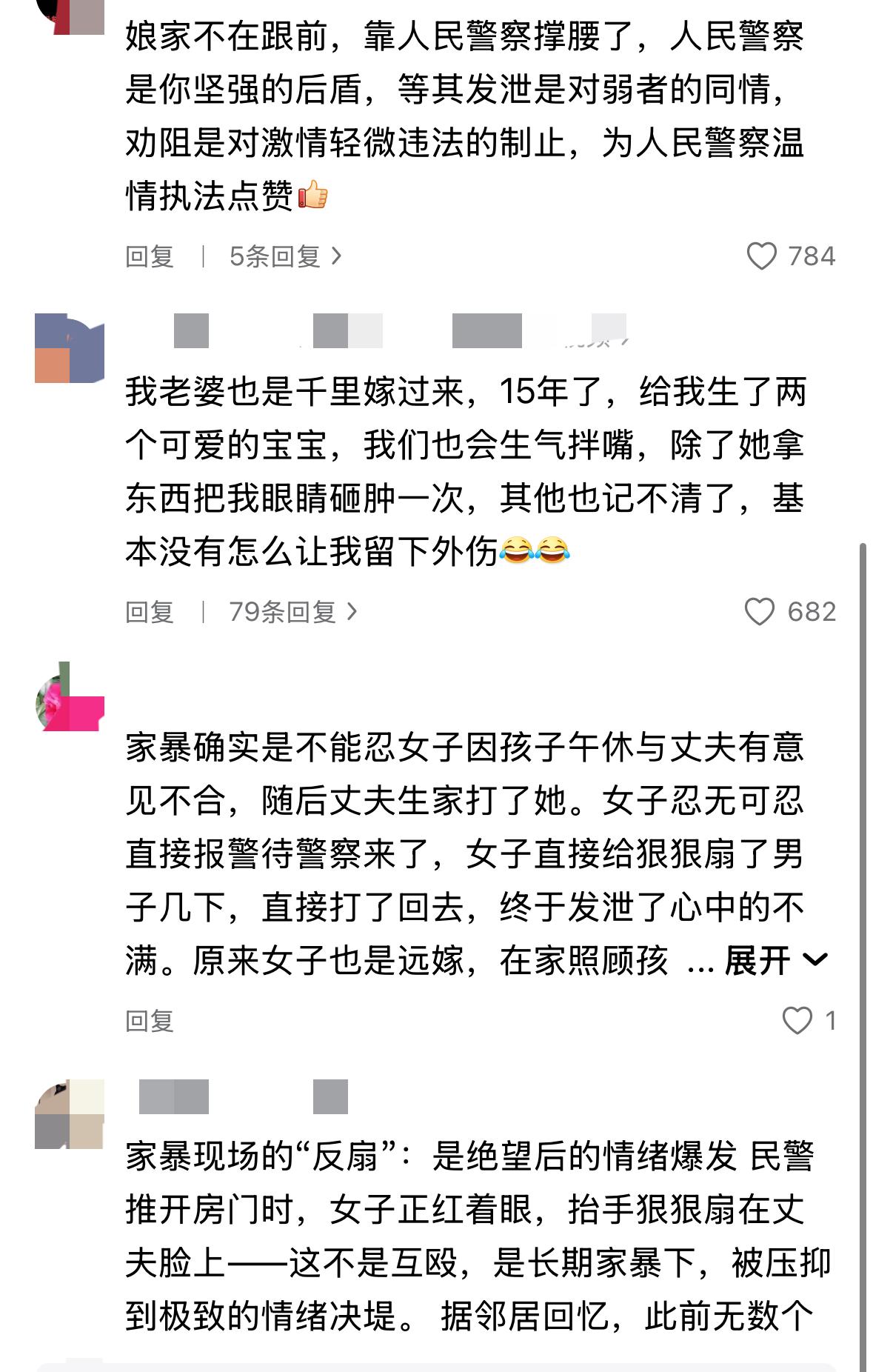 “这样的民警真懂事。”近日,辽宁女子家暴后狂扇丈夫,一旁的民警硬生生等女子发泄完,才开始劝解。 10月16日,辽宁一名女子遭遇家暴后,颤抖着拨通报警电话,待民警赶到时,她突然失控,对着丈夫疯狂扇耳光。 民警并未立即制止,而是等她情绪稍缓才上前劝阻。 监控视频中,女子边打边哭喊“我嫁这么远不是来挨打的,我给你洗衣、做饭,你竟然打我。”这一幕让无数网友心碎。 她狂扇丈夫,丈夫又不敢还手,只得无奈说:你不要太过分啊。 女子更生气了:你打我比这更狠。 民警站在一旁,她仿佛有了底气,她积压多年的委屈如决堤洪水:远离家乡的孤独、文化差异的隔阂、丈夫的暴力与冷漠,在这一刻彻底爆发。 有网友说:“打得好!家暴男就该被教训”,“民警做得对,让她发泄完再处理”。 “远嫁的苦,只有经历过的人才懂”。 有网友翻出类似案例:2024年山东一女子被家暴报警后仍遭踢踹,涉事男子仅被拘留10日;而2025年河北一女子因长期遭家暴反击致丈夫死亡,虽获谅解仍被判15年。 这些案例让网友感慨:“被家暴者维权太难,远嫁女性更是孤立无援。” 远嫁,从来不是简单的地理迁移。它意味着: 身份认同的混乱:方言、饮食、习俗的差异,让远嫁女性成为“夹缝人”。 情感支持的缺失:娘家远在千里,婆家若不包容,连吵架都无处倾诉。 家庭地位的弱势:有远嫁女性自述:“在婆家,我连吵架都不敢太大声,怕被说‘没教养’。” 更残酷的是,远嫁女性往往承担更多育儿压力。一位远嫁的江西女子曾说:“孩子生病时,我抱着娃在医院跑上跑下,而公婆只会说‘你们年轻人自己解决’。” 她们为爱情跨越山海,却可能在婚姻中遍体鳞伤。家暴不是“家务事”,而是违法犯罪;远嫁也不是“原罪”,不该成为被伤害的理由。 愿所有远嫁的女性,都能被温柔以待;愿所有家庭,都能用理解化解矛盾,而非用暴力解决问题。 “她远嫁时带着勇气,请别让她带着伤痕离开。” @秋日生活打卡季