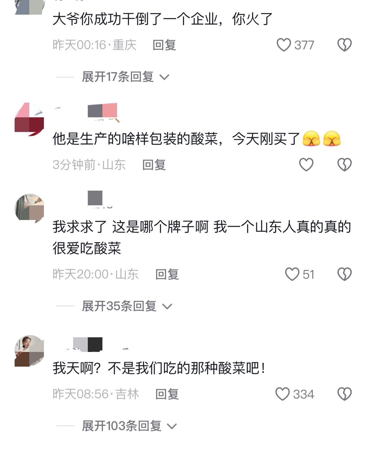 “太恶心了。”大哥可长点心吧,一口痰,吐掉了一个企业,差点毁了整个行业,酸菜行业的可信度快降到0了。 2025年10月,一段拍摄于酸菜企业生产车间的视频在网络上引发轩然大波。 视频中,一名男子站在酸菜池中,手持钢叉翻动酸菜。 令人震惊的是,他在工作全程中不仅抽烟,还多次随口向酸菜池中吐痰。 看到这,对于一个爱吃酸菜的人来说,真是天塌了。 这一画面被曝光后,让很多人感到恶心,网友很是不满,酸菜就是这样生产的吗?卫生条件就这样? 事件曝光后,辽宁兴城市市场监督管理局迅速行动。10月26日晚,该局连夜开展调查执法,对涉事批次的酸菜进行全部扣押,确保问题产品未流入市场。 同时,市场监管部门明确表示,将按照相关操作规程销毁这批酸菜,并对涉事企业展开全面调查。 尽管这算是一件好事,可那令人呕吐的操作画面,真是让人难以忘怀。 涉事企业员工在酸菜池中抽烟、吐痰的行为,不仅违反基本卫生规范,更直接威胁到食品安全。 尽管涉事批次酸菜被及时扣押,但那些没有被曝光出来的呢?想到这,真是浑身不自在。 “男子在酸菜池边抽烟、吐痰”,这是一件损人不利己的事情,不知道这位大哥目前后悔不。 大哥以一己之力干掉一个公司,真是火出了新高度,酸菜事件已经不是第一次了,整个行业都要颤抖了。 卫生管理是食品生产的生命线,任何疏忽都可能摧毁消费者信任。 如今,想吃个正常的饭菜,怎么就这么难呢?谁的问题?