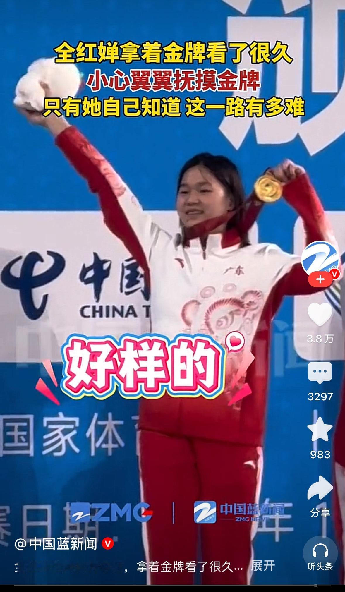 全红婵变胖了、变胖了依然还是冠军。 看着全红婵拿到金牌后的一系列动作, 真是太心疼了。 在赛场上,她以近乎完美的表现摘得金牌, 那轻盈灵动的身姿、干脆利落的动作, 再次惊艳了大家, 变胖也没有影响她拿金牌。 但看着全红婵拿着金牌反复去看、去摸, 真的很心疼。 这一路有多么地不容易, 只有她自己知道。 全红婵的成名史, 就是一部热血逆袭的励志大片。 东京奥运会上一战成名,她以“水花消失术”惊艳众人,成为家喻户晓的跳水天才少女。 那时,她还是个青涩的小女孩,带着对跳水的热爱和对梦想的执着,一路披荆斩棘。 无数个日夜的艰苦训练,无数次从跳台上跃下,只为那短暂而完美的瞬间。 然而,人红是非多。 随着年龄增长,全红婵的身体发生了一些变化,有人竟嘲笑她发胖、不控制体重。 这些刺耳的声音,就像冰冷的箭,射向这个努力的女孩。 但他们不知道,全红婵在成长过程中,身体发育带来的影响远超想象,每一个动作的调整、每一次体重的控制,都需要付出巨大的努力。 全红婵这一路走来,真的太不容易了。 从默默无闻到万众瞩目, 她承受着巨大的压力。 面对伤病的困扰、外界的质疑,她从未退缩,始终坚定地走在追求梦想的道路上。 她用自己的汗水和坚持,诠释着什么是真正的体育精神。 让我们为全红婵点赞, 别再用恶意的言语去伤害这个努力的女孩。 她值得所有的尊重和掌声, 期待她在未来的赛场上, 继续书写属于自己的传奇!