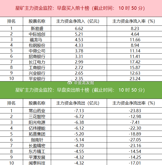 个股层面,新易盛获主力资金净买入超6亿元,位列榜首;中际旭创、福龙马、包钢股份亦获主力净流入居前。另一方面,常山药业遭主力净卖出超7亿元,三花智控、阳光电源、亿纬锂能等资金净流出额排名靠前。财经股票今日盘面分析