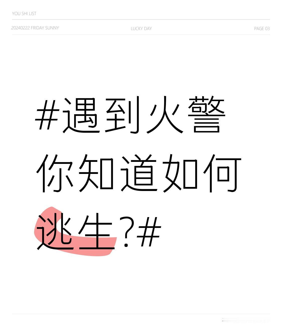 遇到火警你知道如何逃生? 遇到火警,掌握逃生方法很重要。首先要第一时间拨打119,报警时说清地址、着火物、火势等信息。 如果所处房间外着火,先摸下房门和把手温度。若发烫或有烟气从门缝进入,别开门,用湿毛巾等堵门缝,浇水降温,到没烟气的窗口求救。要是房门温度正常,开门缝观察,逃生路线没烟火威胁就赶紧撤到户外。 逃生时,躲避浓烟是关键。现在建筑材料高分子多,烟雾毒性大,别盲目穿越浓烟。家中最好备防烟面罩,能避免吸入有毒烟气。总之,冷静应对,才能增加逃生几率。