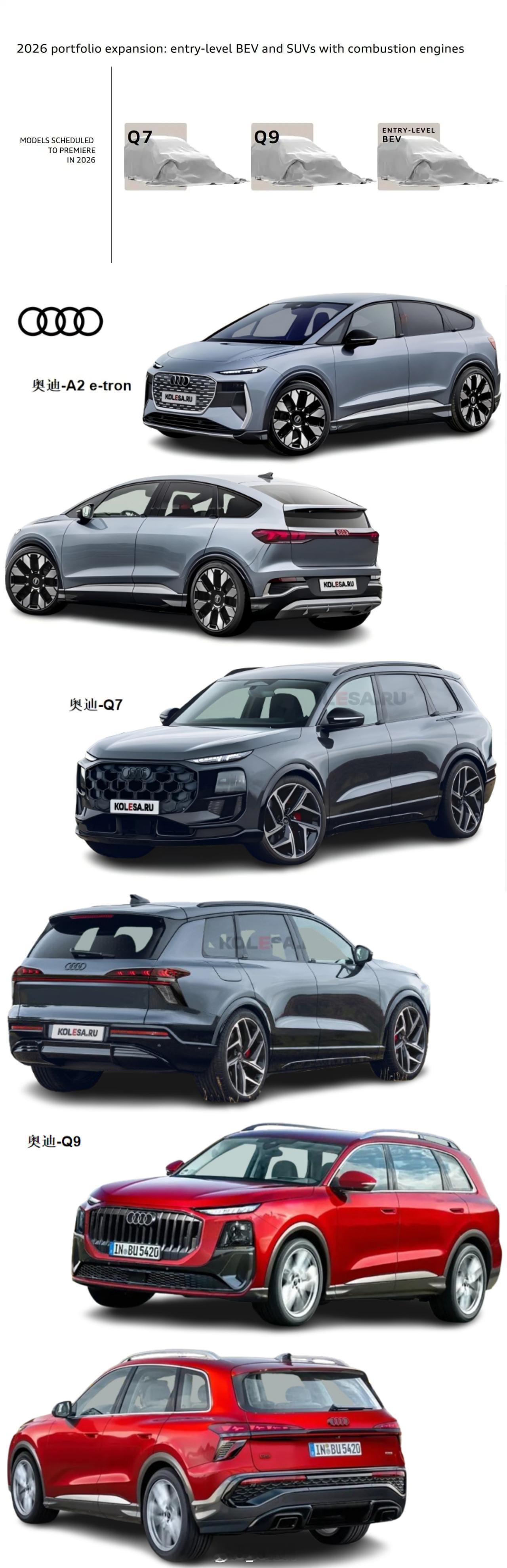 一图尽览!奥迪2026年前瞻阵容,三款重磅新车确定将首发亮相:下一代奥迪Q7、全新奥迪Q9和全新奥迪A2
