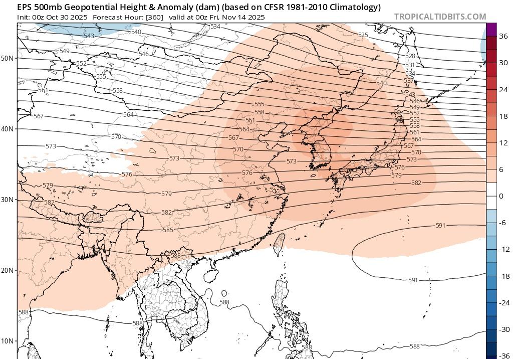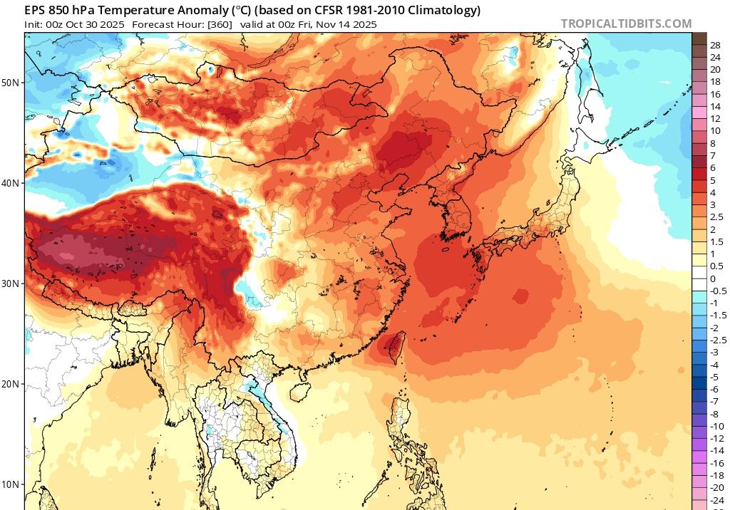 11月,至少前半月没有强冷/寒潮的信号趋势,不知道下半月如何。