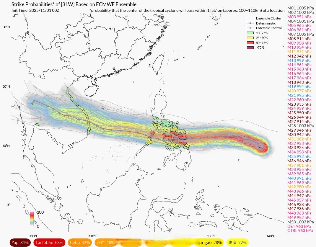 【今年第25号台风海鸥生成,将进入我国南海】11月1日晚上8点,25号台风海鸥在菲律宾以东洋面生成,它最大可能是于11月4日穿过菲律宾中部,11月5-6日进入我国南海,随后在越南登陆。海鸥的路径和2013年超强台风海燕很像,也有不小的发展潜力,请菲律宾中部华人同胞立即做好防台准备。