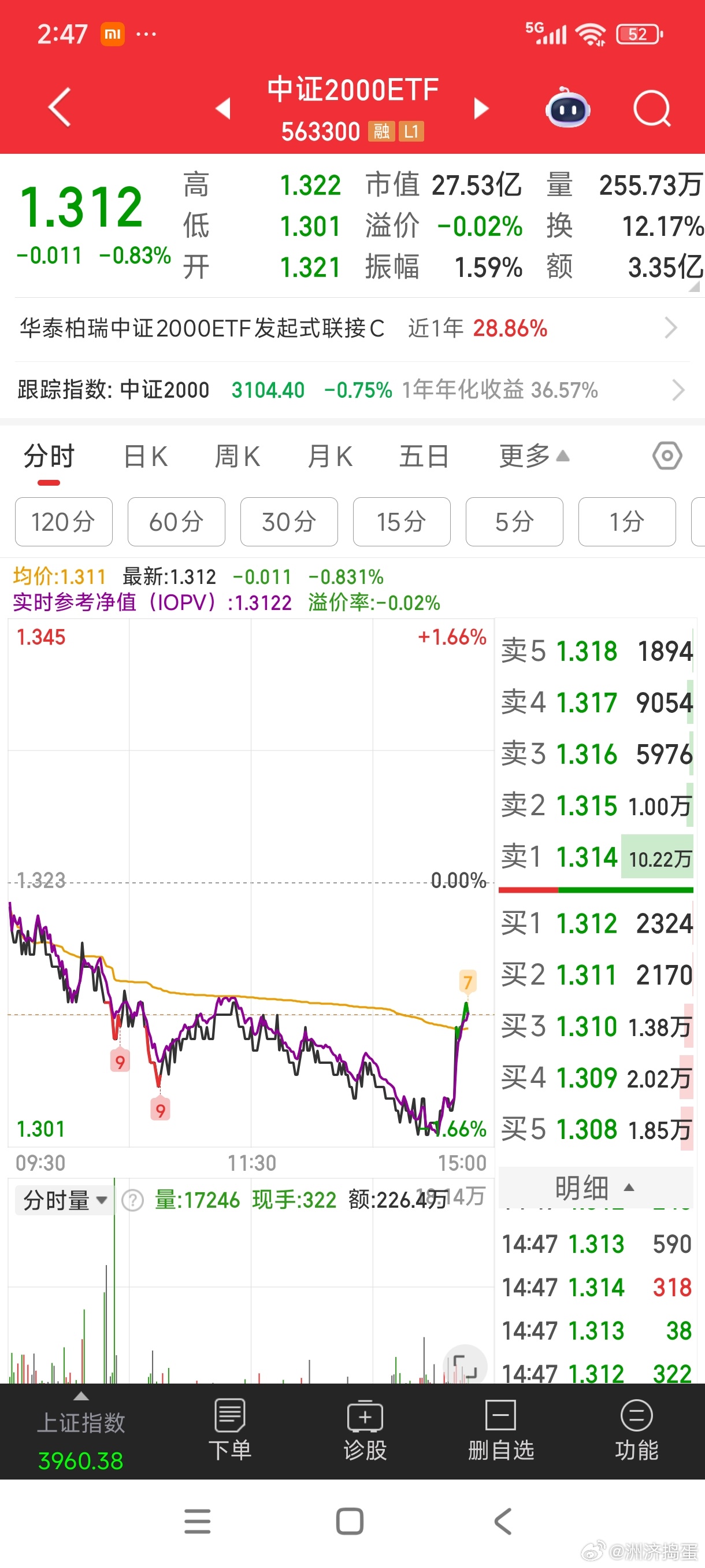 代表个股的中证2000回升的并不慢,但是你这10万手压着啥意思[流汗][流汗]这个数量其实并不多,也就一千多万。。