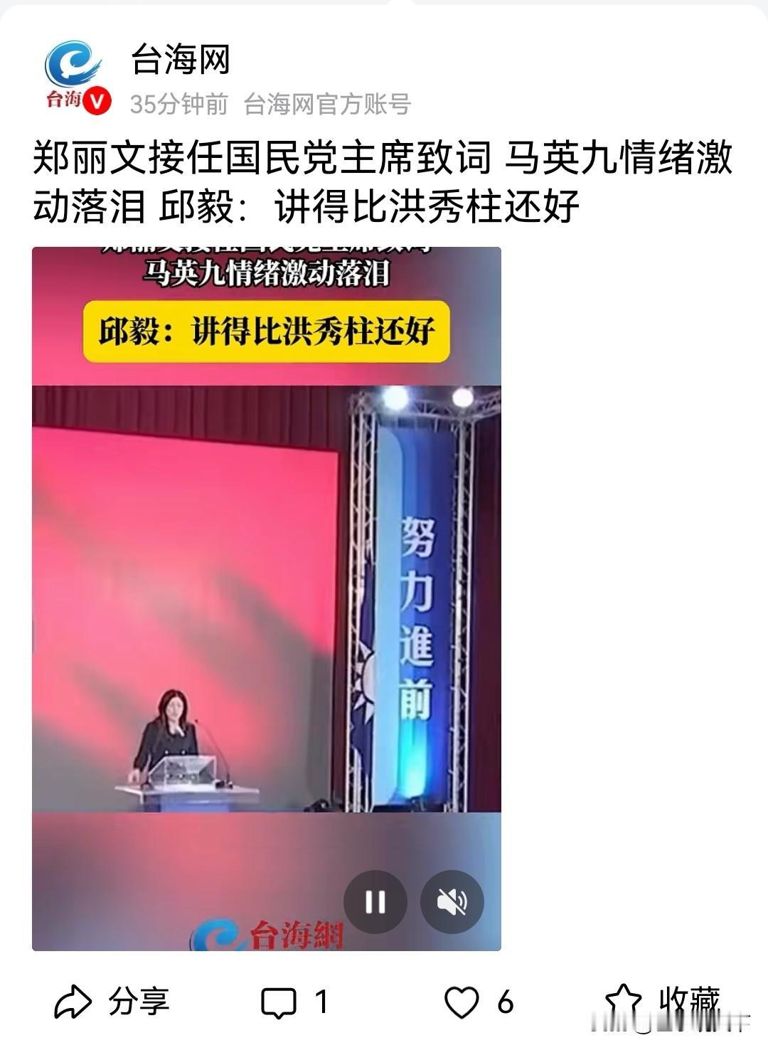11月1日,台湾政坛这出“国民党主席交接戏”挺有看头!郑丽文刚一接任就整了个大场面——致词的时候把马英九说得情绪激动直落泪,连邱毅都忍不住夸:“讲得比洪秀柱还好!” 咱先说说这场面多有冲击力。郑丽文站在台上致辞,言语间满是对国民党未来的期许和对基层的关切,一句“我们要照顾所有的弱势”,直接戳中了马英九的情绪点,当场就红了眼眶。这画面一出来,岛内舆论直接炸了锅,大家都在猜,这新主席到底有啥魔力? 邱毅的评价更是给这事加了把火。他直言郑丽文的致词“比洪秀柱还好”,要知道洪秀柱当年可是以“强硬统派”形象出圈的,邱毅这一夸,等于给郑丽文的“统派底色”敲了个章。不少人开始琢磨,国民党这是要在两岸议题上搞点新动作? 其实郑丽文这人一直挺敢说。之前在“立法院”就没少怼“台独”,立场很鲜明。这次接任后,她能不能带着国民党在两岸关系上走出新路子,让马英九落泪的致辞只是个开始,后续还有得瞧 郑丽文简历