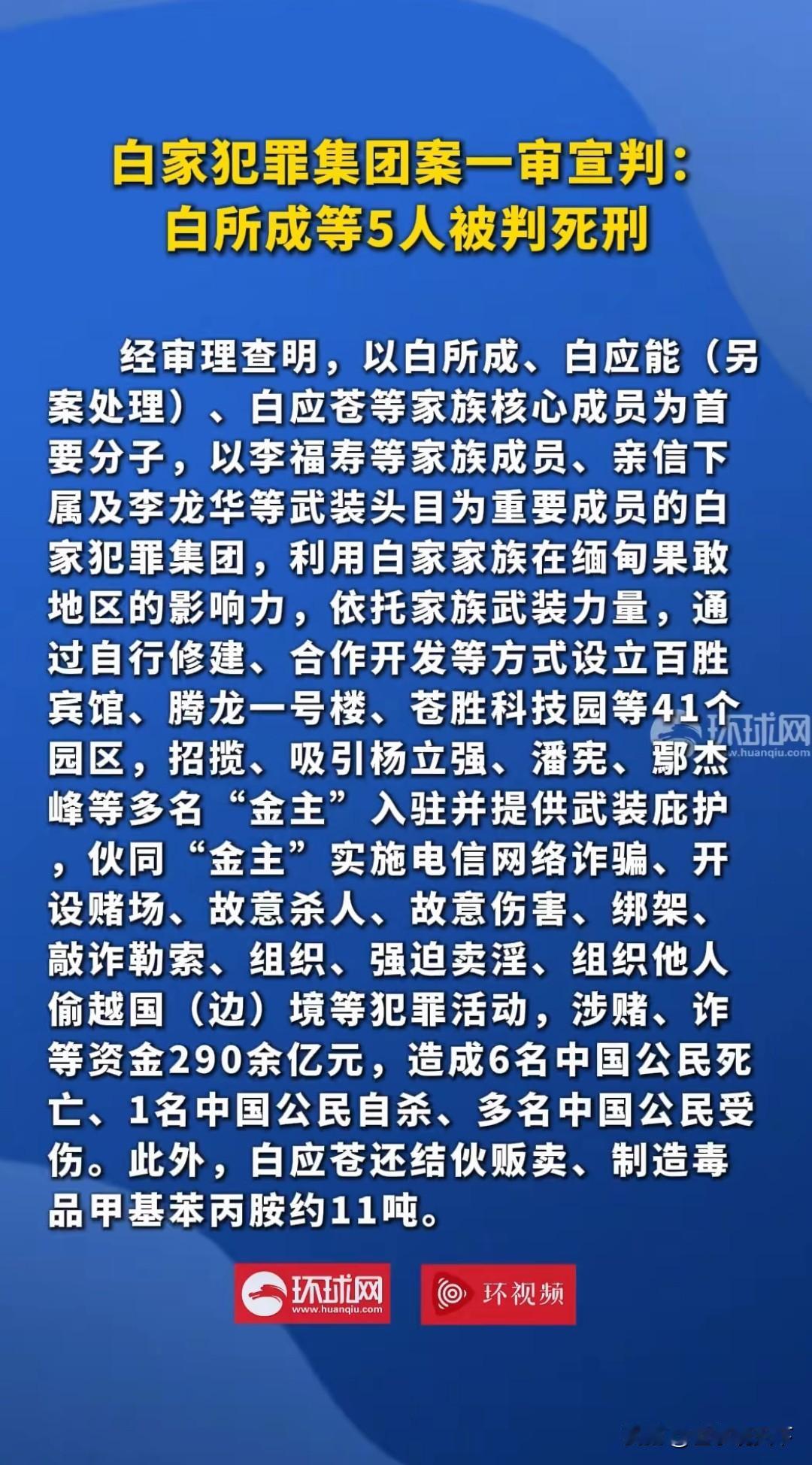 白家犯罪集团那是真的坏透了! 搞电信诈骗、故意杀人, 还贩了十多吨毒品, 害了多少人啊! 现在主犯被判死刑, 这就是罪有应得! 法律就是要严惩这种跨境犯罪, 坚决维护咱们老百姓的权益, 大快人心!