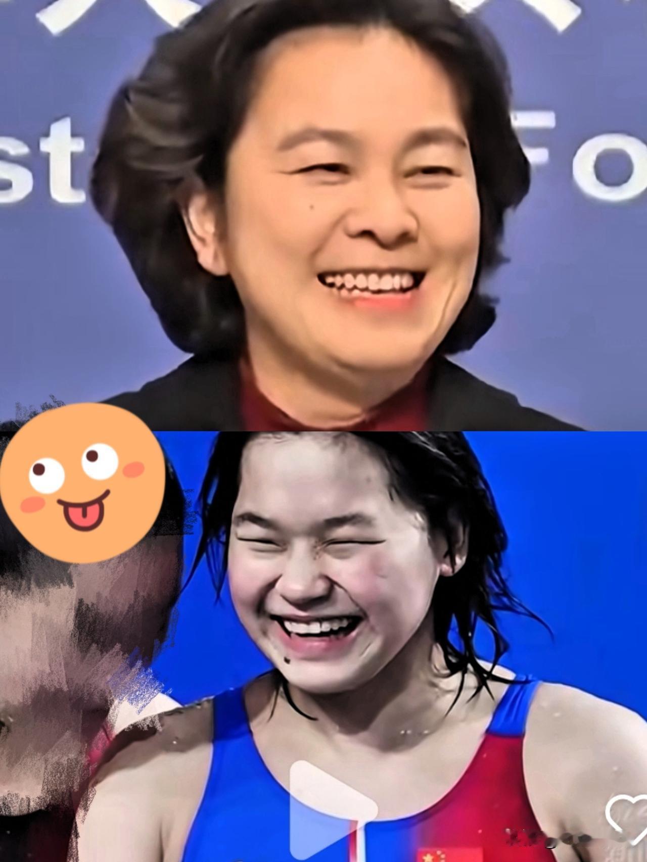全红婵肯定没想到, 自己一个笑容, 误打误撞的就跟那个很厉害的女外交官华春莹撞脸啦!你还别说,福气满满的人还真有相似之处。 全运会跳水夺冠后,站在领奖台上的全红婵笑开了花,那模样和华春莹还真像。仔细一瞧,咪咪眼、露牙笑,连鼻子脸型都有几分神似,就像一个模子刻出来的。婵妈可真是有福气,生出这么个“国宝”级的闺女。 不得不说,全妹和华春莹都是格局大的人,这一对比,更让人觉得奇妙。我觉得这种相似不仅在长相,更是内在气质的呼应。大家觉得她们最像的地方是哪儿呢?