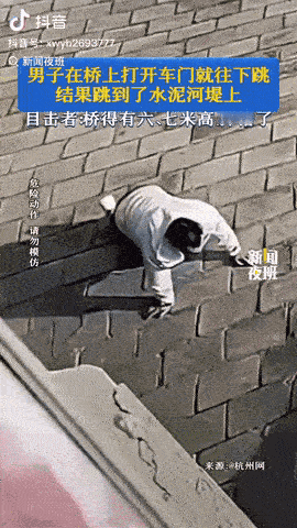 11月1日,河南太康,一男子开车路过大桥时,没想到他打开车门就往下跳,本打算跳河自杀的,结果没看到桥下水在哪里,直接摔在了水泥地上,整个人伤的很严重!网友:真是不幸中的万幸,要是正好掉到水里,后果可想而知。” 信息来源:新闻夜班 这事儿一出,先是吓坏了桥上几位行人,紧接着有人赶紧用手机拍下来,视频在11月2日就蹿到网上。 视频里能看到,河水退得挺厉害,桥墩那儿根本没水,都是硬邦邦的水泥板。 男子落地那一声“砰”,吓得旁人一阵心惊肉跳。 他重重摔在水泥地上,双手狠狠抓着地面,想要爬上去,可伤得太严重,一动都难,坚持了几秒钟就没劲了。 周围的好心人连忙拨打120救援,救护车火速赶来,把他抬上担架送医院。 好在医院检查后,虽然骨头和软组织都受伤不轻,但基本没伤到命根子。 看他从桥上一跳,差点没了命,网友们纷纷留言:“真是不幸中的万幸,要是正好掉到水里,后果可想而知。” 也有人感慨:“这老天开的玩笑有点残酷啊,都想结束生命了,结果连死都没死成,是不是命该留他一命?” 其实咱都不知道他心里到底背了多重的包袱,才会这么绝望地选择跳桥。 但这一回“失败的自杀”或许给了他一次重启的机会。 生活就像一场闹剧,谁都可能有被压垮的时候,可别忘了,哭诉和求助都是活下去的办法。 其实,活着才是硬道理,千万别拿生命开玩笑,有困难,找亲友或者求专业帮助,或者去适当运动、找人聊聊天、写写日记,也能放松下心情,也许就不会有轻生的念头了。 希望他的身体能早日康复,也提醒所有人:别让绝望盖过善意和希望,要好好珍惜生命,毕竟生命只有一次,方法总比困难多,我遇到困难了,就想方法解决,别轻易放弃生命,不要让家人悲伤。