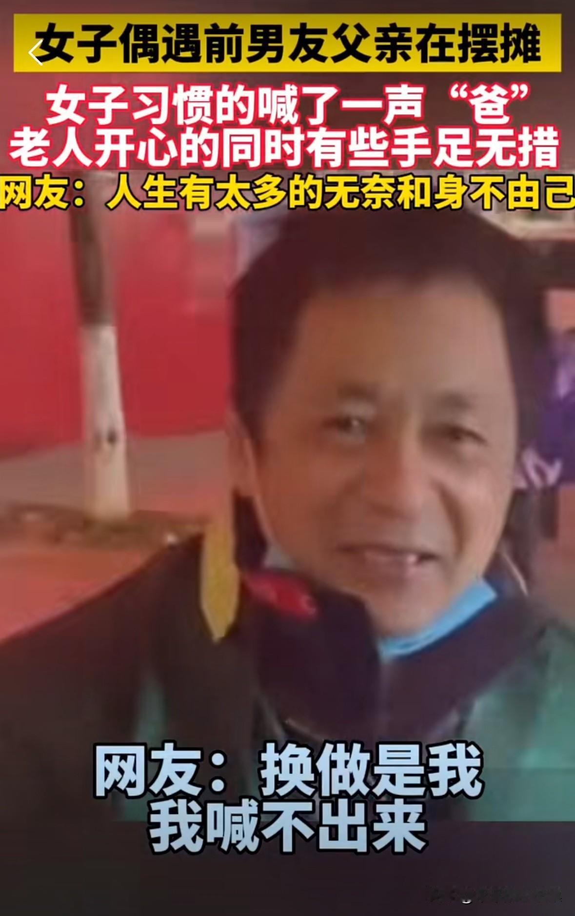 女子在街上看到前男友的父亲在路边摆摊,于是习惯性的喊了一声“爸”。 老人非常开心,并且有点手足无措,更多的是无奈。 看的出来爸爸很喜欢这个姑娘,只是被他有眼无珠的儿子错过了。 网友:这个姑娘肯定是个好姑娘,错过她就是这辈子最大的遗憾。 如果是我肯定喊不出来,因为我觉得既然分手了,就没有任何关系了,为这个女生点赞。分手