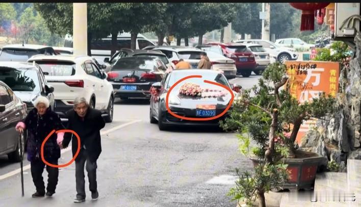 这不是偶遇,这是天缘。前有白首伉俪温馨牵手相濡以沫;后有喜结良缘新婚燕尔幸福守望;前者先苦后甜,结伴而行,勤俭长寿做榜样,后者尊老爱人,恭良谦让,仁义礼智有传承,好一幅和谐画面。(图片来自网络侵删)