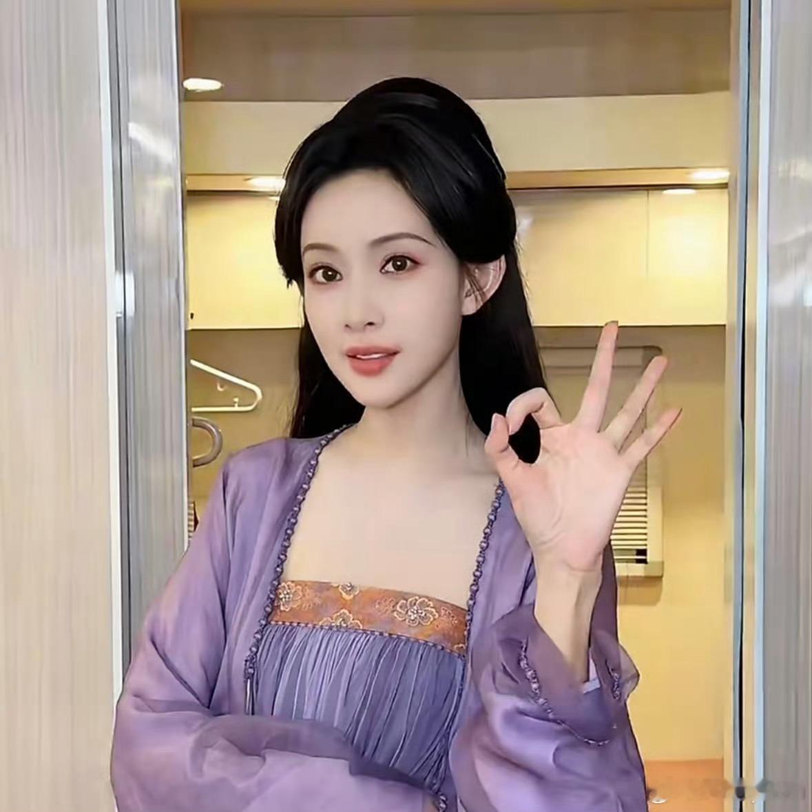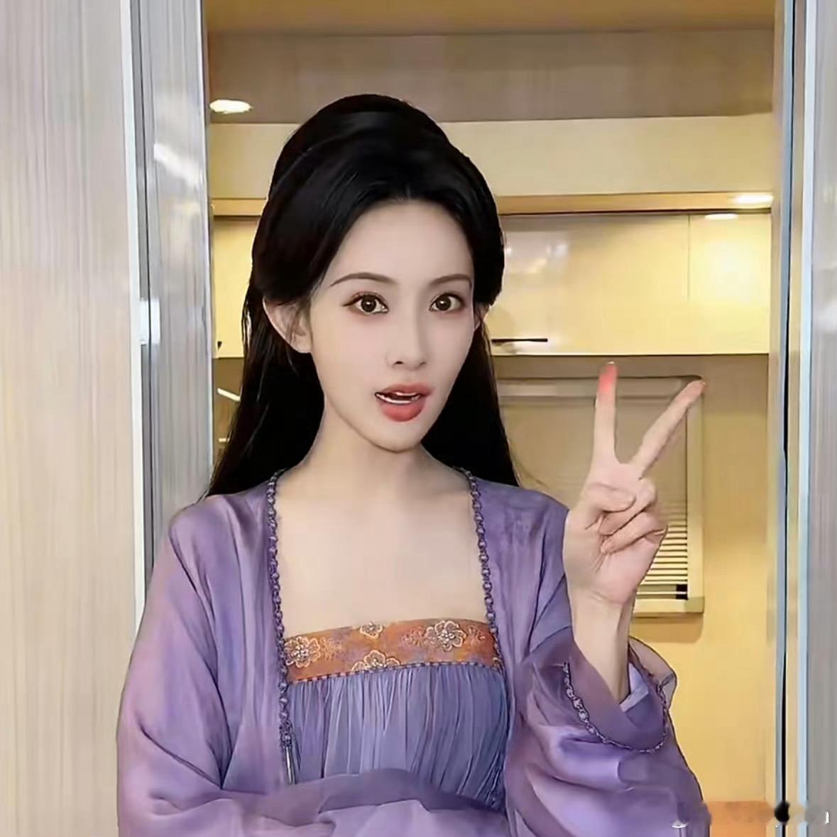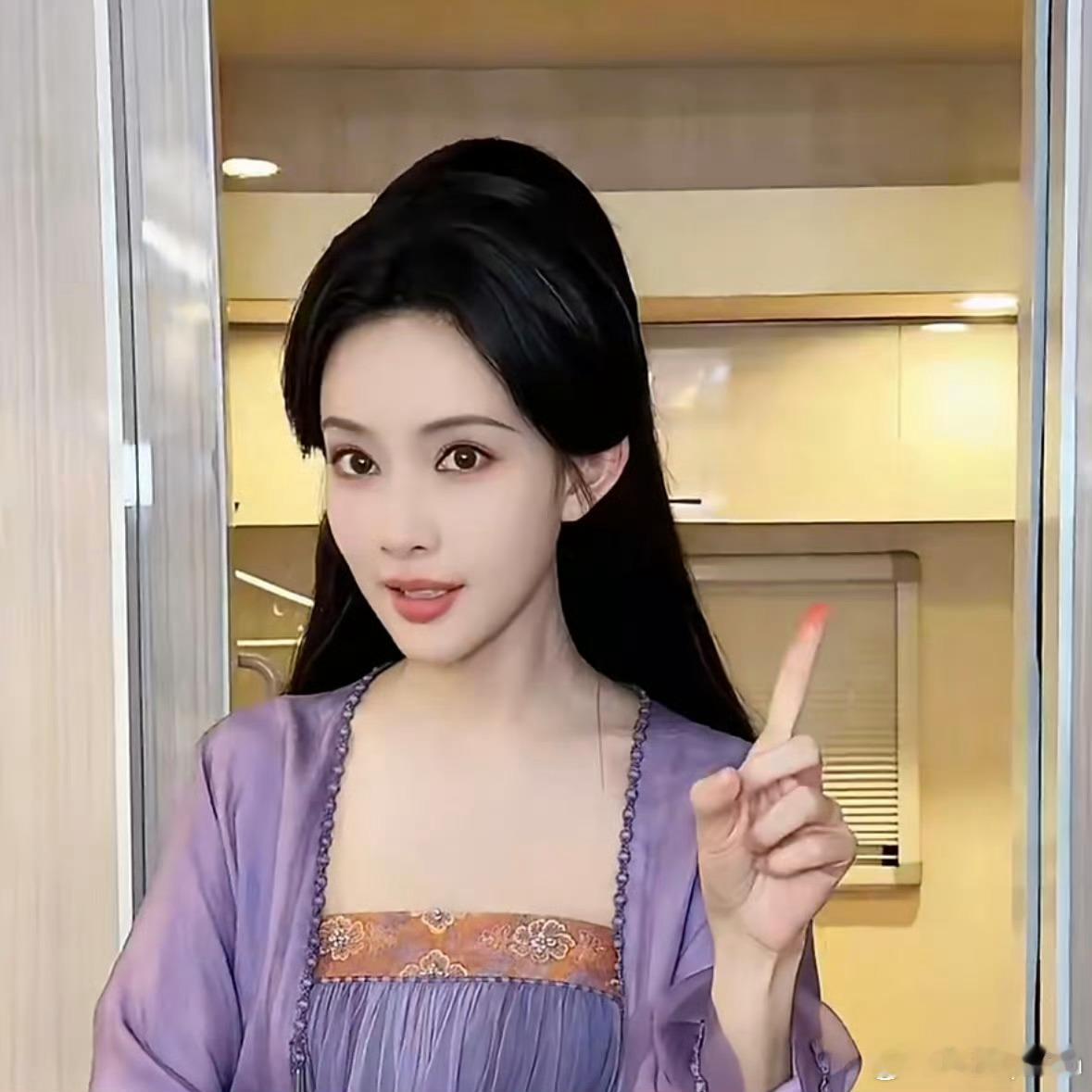 实在是喜欢孟子义这个紫色寝衣款造型,老温柔了!但是孟姐啊,你那个食指是刚涂过口红吗[偷笑]