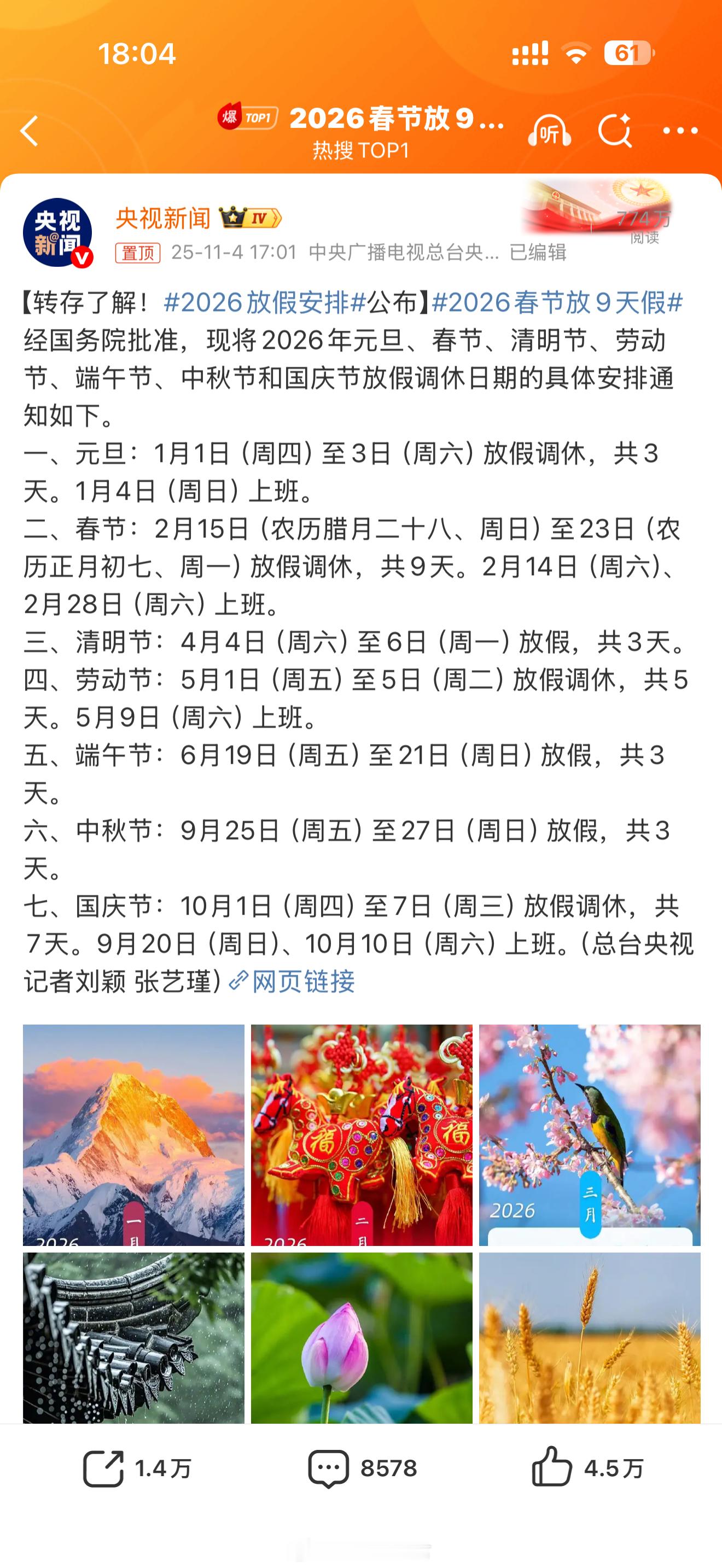 2026春节放9天假2826年的假都来了,大家可以提前规划怎么利用怎么调休怎么玩的时间长,或者怎么才能挣三薪~