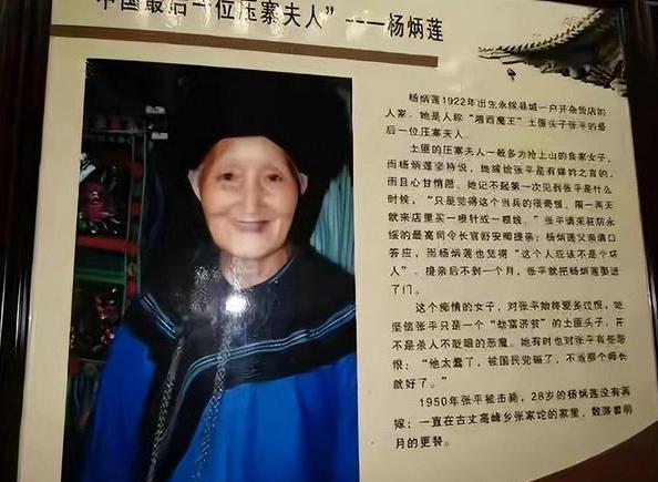 1935年,湖南湘西一杂货店的一个长相十分美艳的少女杨炳莲正在卖货,这时,店里来了一个当兵的大汉,别看这汉子五大三粗显得彬彬有礼。他买了一根线后,转身离去。 这汉子,就是时任国民党128师副官的张平。 张平打那天起,魂儿就落在了杂货店。他有事没事就来“买东西”,每次都扔下一堆钱不找零。这心思,傻子都看明白了。没过多久,张平不来买东西了,直接带人上门提亲。 一个月后,16岁的杨炳莲,坐着花轿,嫁给了29岁的张平。 刚结婚那会儿,日子过得是真甜。张平虽然比她大一轮,但对这个美艳的小娇妻是捧在手里怕摔了,含在嘴里怕化了。杨炳莲也以为自己是天底下最幸福的新娘。 可这“幸福”的肥皂泡,一个月就破了。 她很快就从乡亲们躲躲闪闪的眼神里,听到了关于丈夫的“另一面”。 “张平?他哪里是什么好人!” “他就是个活阎王!” 更让她毛骨悚然的是,她发现自己居然是张平的第三任妻子。那前两任呢? 第一任,被张平活活虐待打死了。 第二任,实在受不了,拼死逃回了娘家,才捡回一条命。 杨炳莲一听,当场就瘫了。她天天活在恐惧里,就等丈夫什么时候露出真面目。可怪就怪在这,张平这个暴戾成性、性格扭曲的恶霸,对全世界都狠,唯独对杨炳莲,他一辈子都没动过一根手指头。 这事儿,成了湘西一个最大的谜。 杨炳莲嫁给他没多久,抗战爆发了。张平要去宁波抗日,把杨炳莲安顿回了老家张家坨。 你以为他去抗日了?他靠着在老家搜刮的民脂民膏,去贿赂高官,结果毫发无伤地回了老家,还混了个古丈县警察局中队长的职位。 这下好了,“活阎王”手里有了枪杆子。他吃空饷,巧立名目,对过往客商收“户口税”,黑白两道通吃。 但坏事做多了,总会翻车。他得罪的人太多,仇家联合起来把他告了。永顺专署一查,这官儿没了。 被撤职的张平,成了过街老鼠。他一不做二不休,带着老婆孩子和28个兄弟,直接上山,当了土匪。 这一下,杨炳莲“军官太太”没当成,稀里糊涂地成了名副其实的“压寨夫人”。 直到1944年,国民党搞“招安”,张平这种有“前科”的军官成了香饽饽,摇身一变,又成了“古丈县自卫团副司令”。 这回,张平彻底放飞了。他成了手握军权的地方军阀,开始在当地大肆种植鸦片,疯狂敛财。 杨炳莲作为“司令夫人”,生活极尽奢华。据她晚年回忆,那会儿家里佣人一大堆,连喂马、喂鸡、遛鸟都有专人伺候。 可就在这种黑窝里,杨炳莲活成了一个“异类”。 她丈夫是“活阎王”,她却成了当地百姓口中的“活菩萨”。 她从不沾丈夫的那些恶习,不抽鸦片,不恃强凌弱。她最大的爱好,还是跟小姑娘时一样,遛遛狗,逛逛街,听听戏。 她仗着张平对她的宠爱,开始偷偷“败家”。 她经常溜进丈夫的书房,偷拿张平的印章,给那些交不起税的穷苦百姓,偷偷盖上“已缴”的税票。 谁家要是真被张平逼得活不下去了,杨炳莲就打开自家粮仓,把钱和粮食偷偷送出去。 你以为张平不知道吗?他精得跟鬼一样。但他对这个心爱的妻子,选择了睁一只眼闭一只眼。 这是一个多么诡异的共生关系:丈夫在外当“阎王”收割,妻子在内当“菩萨”救人。张平的恶行有多深,杨炳莲的善行就有多广。 1949年,新中国成立了。解放军开始进山剿匪。张平这种背着血债的,是重点目标。他放不下杨炳莲和孩子,带着她们东躲西藏,最后还是被抓了。 1950年,张平的批斗大会召开。那真是人山人海,全县城的百姓都来了。他的罪行,三天三夜都说不完。最终,群情激愤之下,张平被当场枭首示众,尸体被曝晒了整整三天。当地老百姓恨得不行,路过都要上去踢两脚,还放鞭炮庆祝。 丈夫被处决,杨炳莲在老家心都凉了。她想,自己作为“土匪婆子”,肯定也活不成了。 解放军干部很快就找上了门。杨炳莲闭上眼,等着宣判。 可她等来的,却是一句:“你无罪释放。但家产全部没收,以后自力更生。” 杨炳莲当场就懵了。 原来,就在她等死的时候,那些被她救过的、拿到过她盖假章税票的、吃过她家粮食的百姓,自发地聚集起来,联名向解放军求情。 “杨炳莲是个好人啊!” “她救过我们全家!” “她是活菩萨,她跟张平不一样!” 当张平的恶换来了百姓的鞭炮和唾骂时,杨炳莲的善,为她自己换来了一张“免死金牌”。 她前半生靠着美貌和丈夫的宠爱活了下来;而她的后半生,是靠着自己的善良活下来的。 之后的几十年,杨炳莲就住在老家李家洞,成了一个最普通的农村老太太。她靠自己织布、做手艺活,拉扯大了几个孩子。她和邻里关系极好,谁家有困难她都帮。 直到晚年,有游客来湘西探秘,才发现了这位“中国最后一位压寨夫人”。人们惊讶地发现,这位九旬老太,虽然满脸皱纹,但那双眼睛,还跟15岁时在杂货店卖线时一样,清澈、干净。 2014年,杨炳莲老人平静离世,享年95岁。