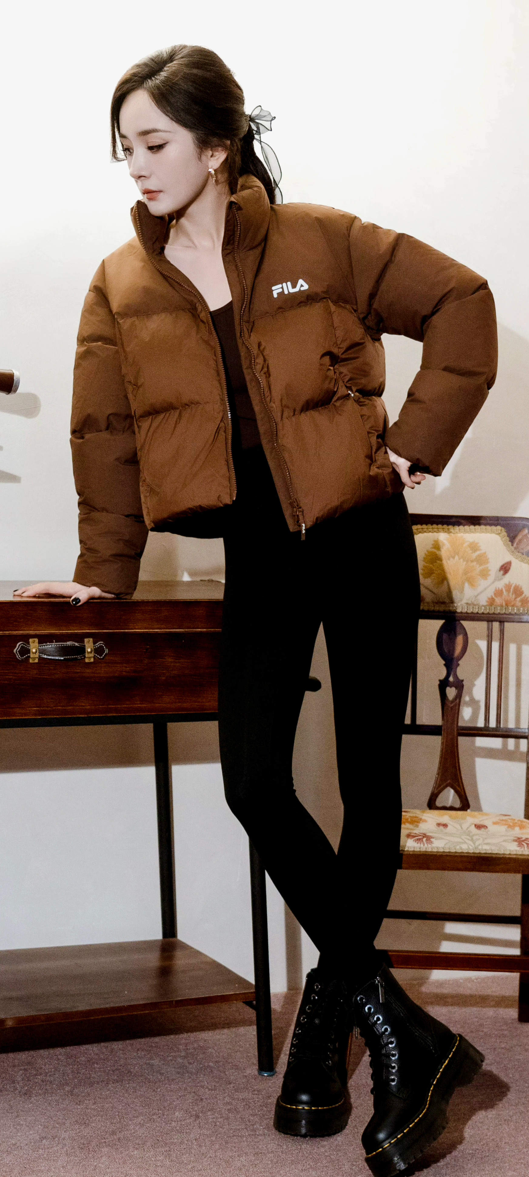 杨幂 短款羽绒服,修身长裤,这身材怎么穿都时尚[期待]