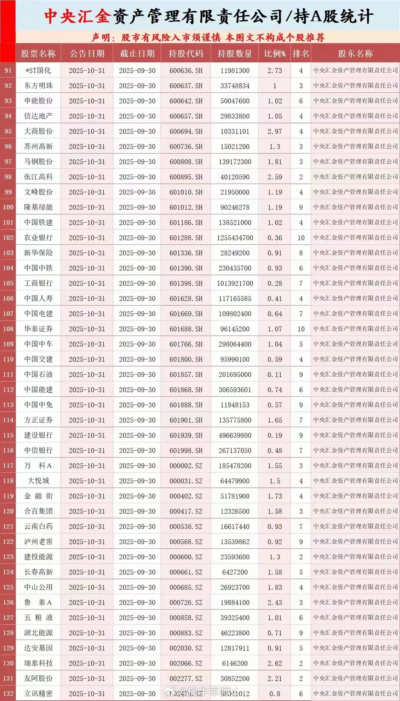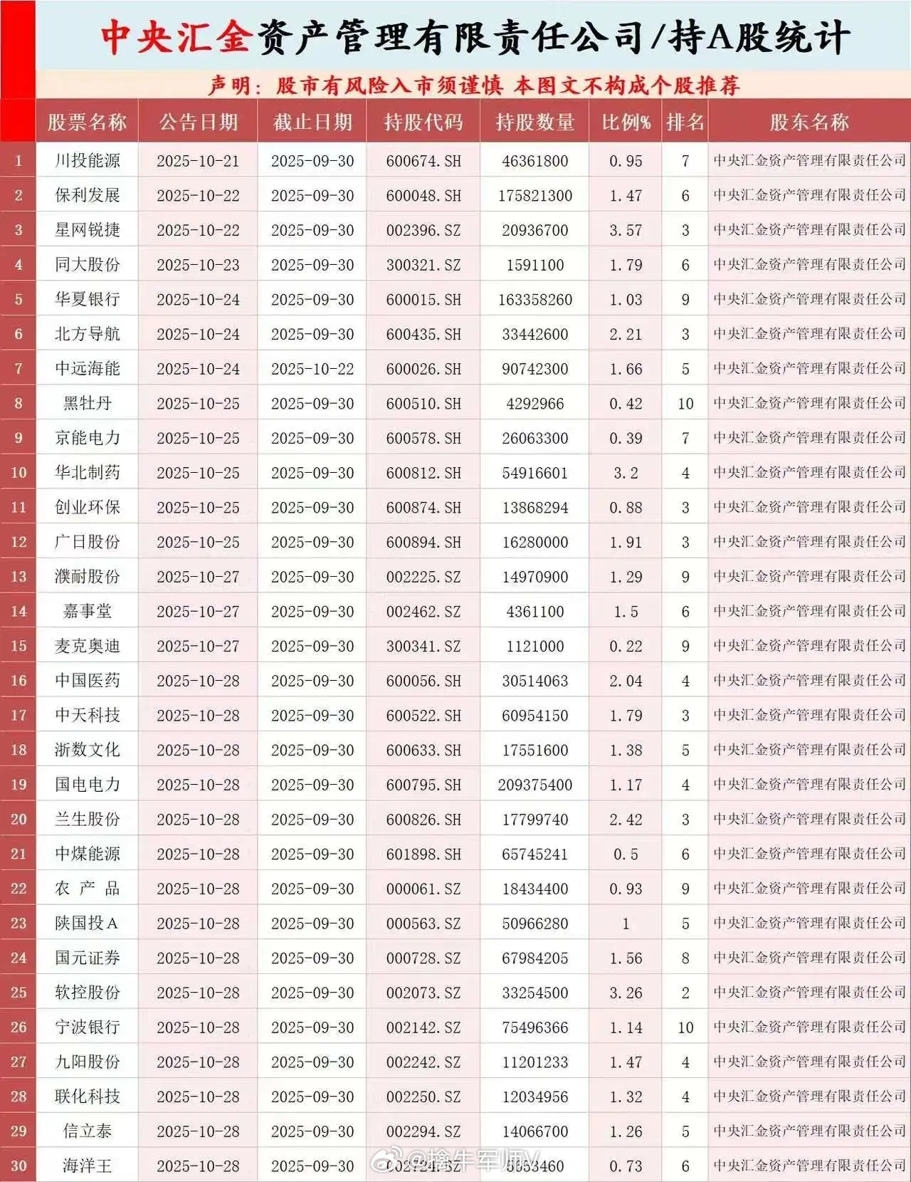国家队三季度最新重仓名单曝光在A股国家队是指由最高中央直接或间接控制、用于维护市
