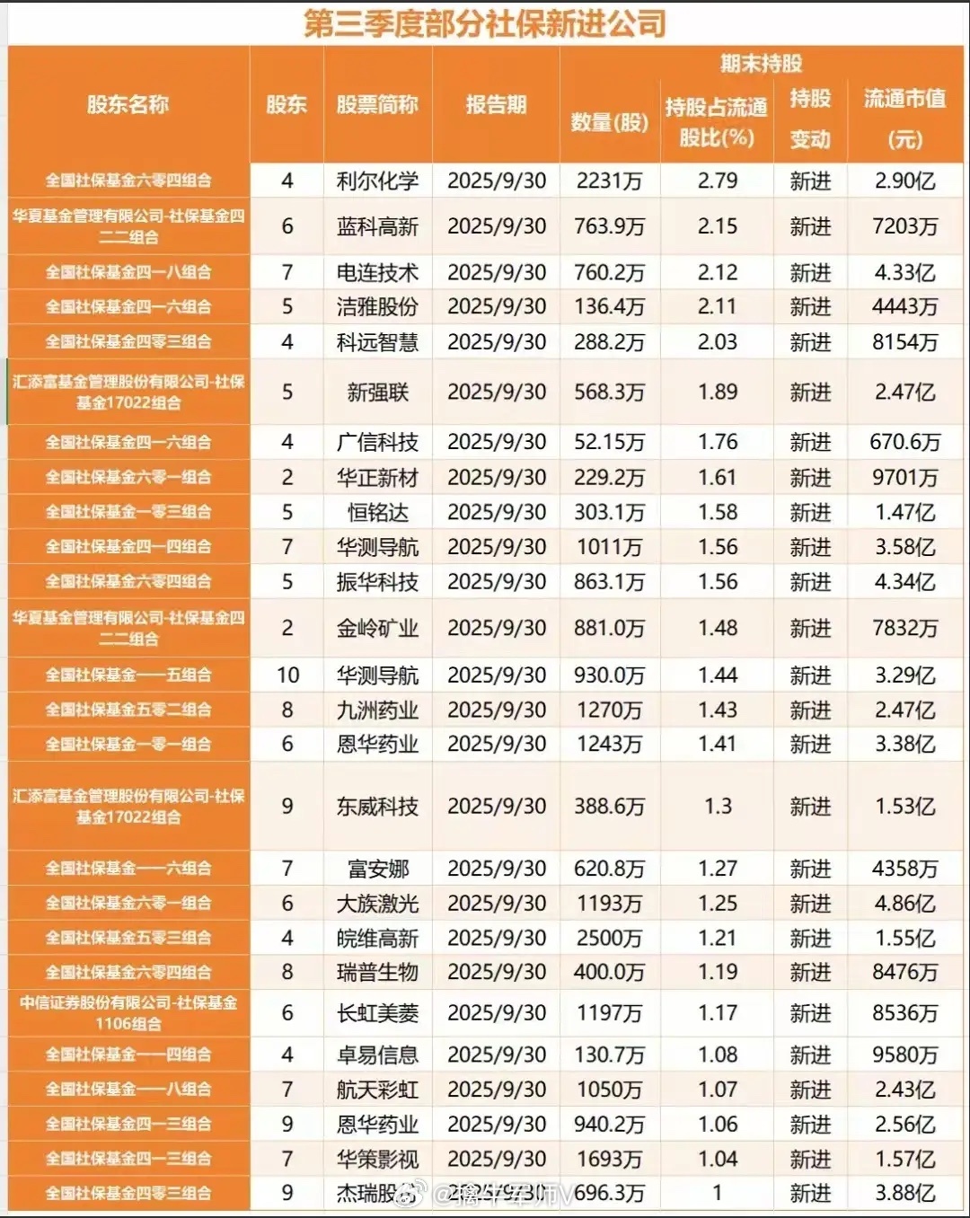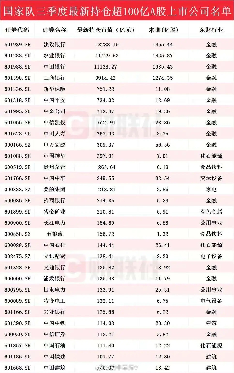 国家队三季度最新重仓名单曝光
