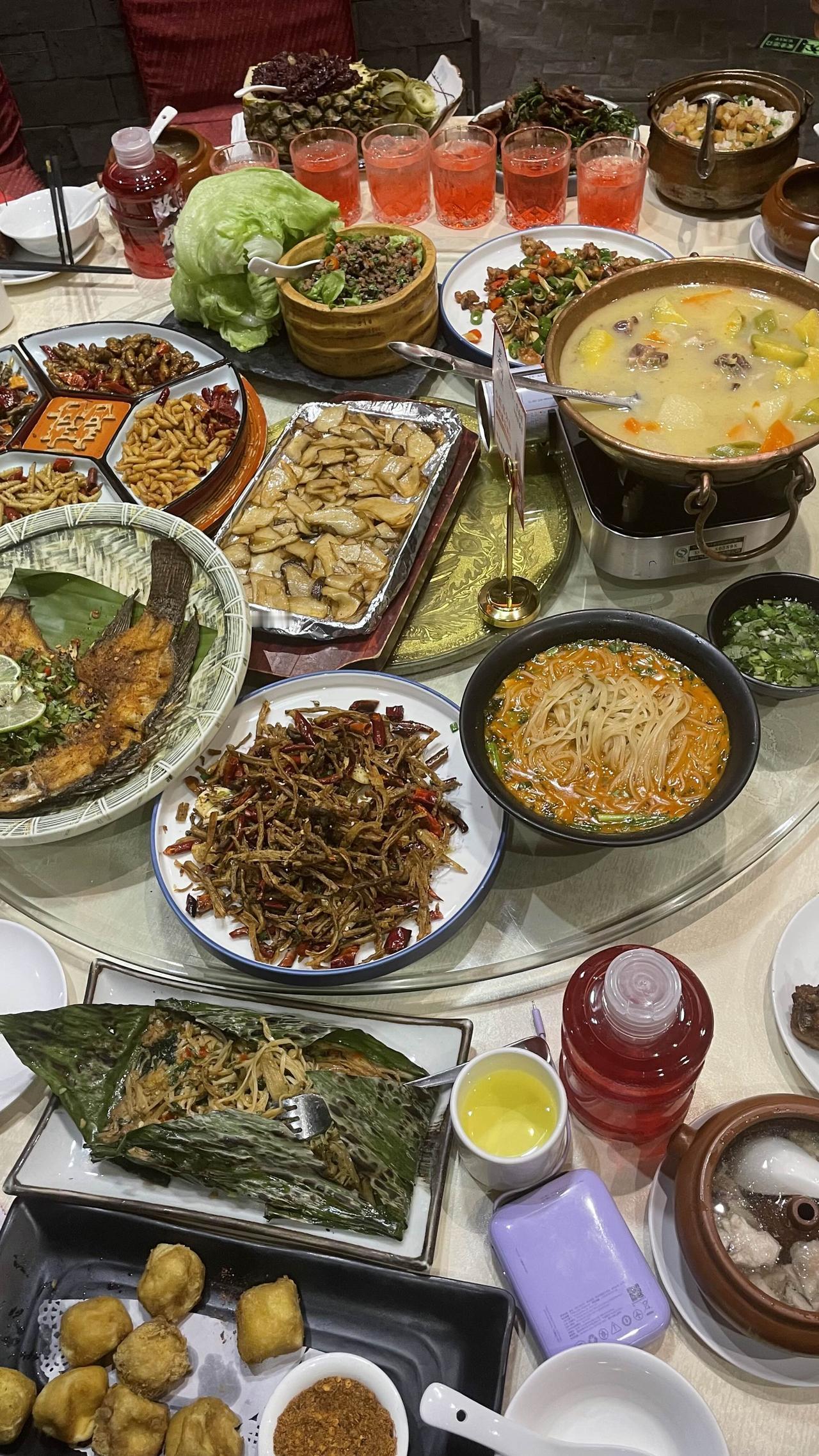 今天去逛郑东万象城,吃个郑州开了15年的地道云南菜,芸河荟餐厅四季如春,花草茂盛,竟然有26个特色菜,人气依旧火爆! 炸虫野味四拼,丽江铜锅腊排骨,腾冲士锅仔,云南汽锅鸡,老滇味大酥牛腩,阿佤牛肉卷薄荷酥牛肉,香草排骨,味道鲜美。 傣族香茅草烤鱼,腊肉洋芋焖饭,小锅饵丝菠萝饭香甜可口,再来一杯泡鲁达和玫瑰花醋,喝起来真是过瘾。 这个店一直请的是云南的厨师,用的食材也是天天空运,做地地道道云南味道,不用去云南也能尝到云南好味道。 云南 云南菜 郑州美食店