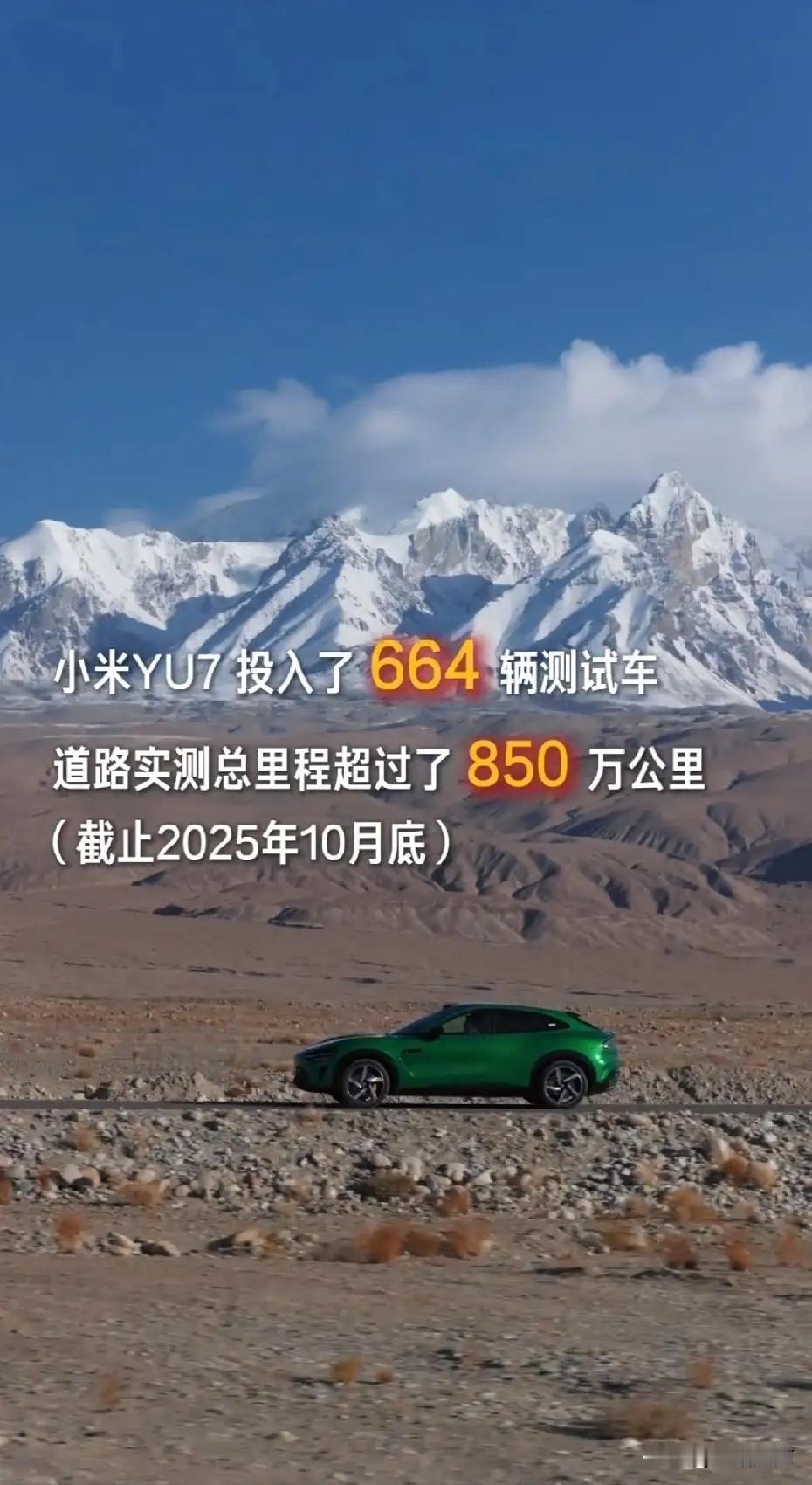 一直疑惑:“小米SU7、YU7都上市好久了,咋街上还全是路测车?难道买的是半成品?” 雷军回应:“不是在测试新车,是在死磕品质。” 他透露小米光SU7就投了727辆测试车,跑了超1300万公里;YU7更猛,664辆车跑够850万公里,加起来1000多辆试验车,总里程绕地球赤道能转325圈。这投入可不是说说而已,要知道行业平均测试车辆规模也就小米的十分之一,里程更是差着两三倍。 而且小米的路测根本不是“走过场”,全是往极端环境里“造”。零下30度的黑河冬测,看电池会不会冻“罢工”;50度高温的吐鲁番夏测,验空调和电机扛不扛造;连海拔5100米的帕米尔高原都不放过,测试低氧环境下的动力输出。之前还有网友在海拔4636米的雄珠拉垭口拍到YU7测试车,这测试强度确实少见。更较真的是,雷军自己每年都亲自下场,去年就开着YU7跑了1310公里冬季高速,平均时速超100公里,全程只充了2次电。 最关键的是,这些上市后的路测全是为了用户。不同于其他品牌“上市即测试结束”,小米的路测贯穿交付后,单台车要跑满20万公里模拟全生命周期。比如用户吐槽的冬季续航衰减、复杂路况异响,这些实验室里测不出来的问题,全靠路测车在真实场景里挖出来,然后通过OTA升级优化。之前SU7的几次续航优化、NVH降噪升级,背后全是这些路测数据在撑腰。 当然也有人质疑是“车海战术堆数据”,但看看实际结果:J.D. Power的质量榜单里小米排第一,SU7交付43天就破万辆,用户投诉率比同级低不少。这就像手机系统持续更新,汽车也得靠不断实测迭代,才能越开越顺手。 现在终于明白,为啥小米敢说“开上就知道品质”。比起靠参数堆噱头,这种砸钱砸力搞实测的态度,反而让人觉得踏实。毕竟买车最在意的,不就是开着省心、用着放心吗?