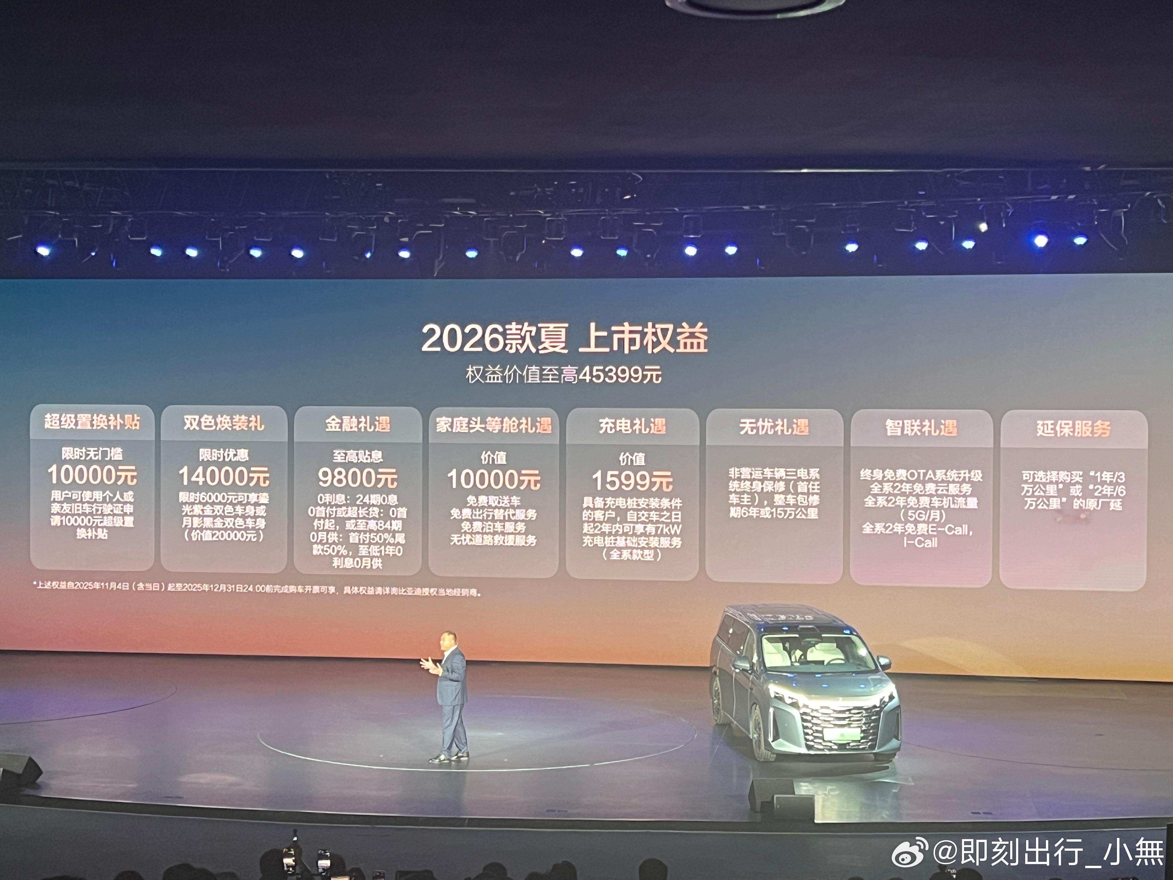 今天,2026款比亚迪夏正式上市,限时超级置换补贴价19.68万起。这次新增了2款全新车身颜色,分别是月影黑金双色和鎏光紫金双色。田亮和叶一茜一家也来到了现场!2026款夏上市发布会