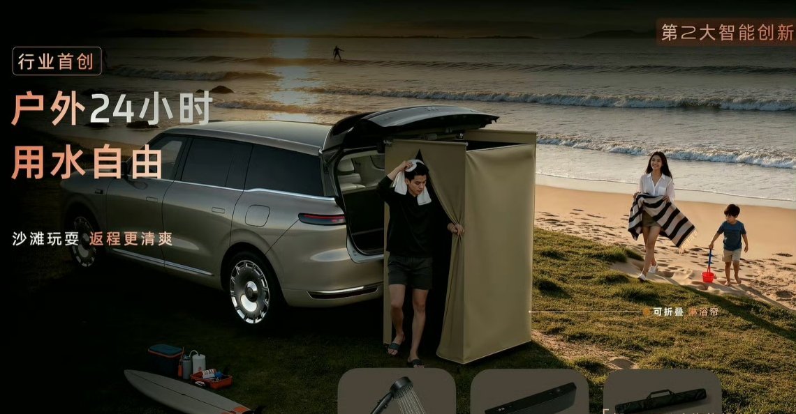 喜欢露营的朋友应该喜欢这个野奢户外套装,可加热储水箱、花洒、自行车装挂……上汽旗