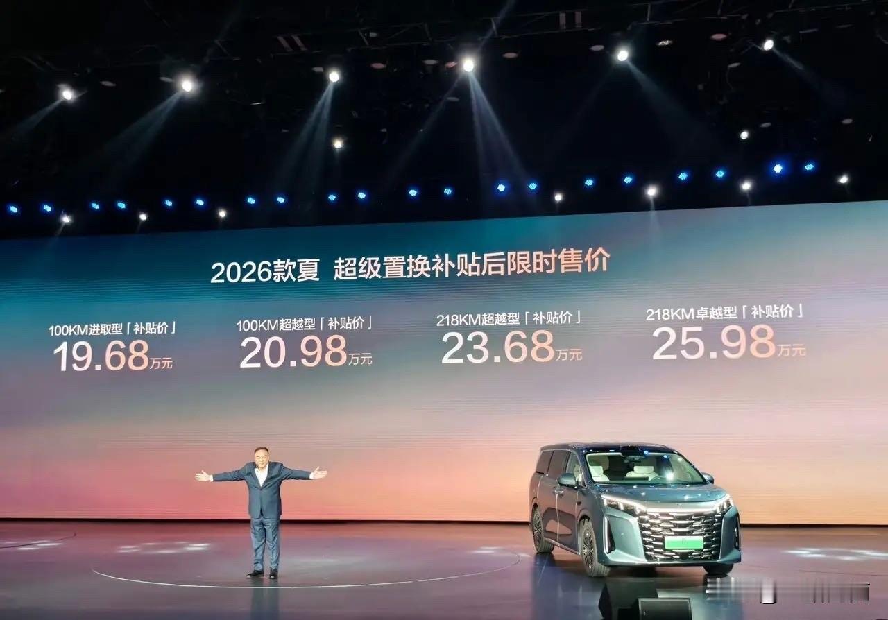 19.68万!王传福放出王炸!比亚迪夏放手一搏了,管不了那么多了! 2026款比亚迪夏官宣预售,置换补贴后入门价只要19.68万,这么大一台中大型MPV卖得比不少家用SUV还便宜,刚公布就传订单破万,这是彻底要在MPV市场放手一搏了! 谁能想到,曾经起售价近25万的比亚迪夏,现在直接把门槛拉到20万以内。要知道同级别的传祺E8起售还得20.98万,别克GL8的入门版更是要23万多,比亚迪这波等于用更低的价格,给了更大的尺寸——车长超5.1米、轴距3045毫米,2+2+3的七座布局,二排零重力座椅带按摩,三排也能轻松坐下成年人,家庭出行完全够用。 光价格狠还不够,配置直接堆到“溢出来”。入门版就标配双侧电动滑门、15.6英寸旋转中控屏,还有全域智能防晕车系统,家里老人小孩坐车再也不怕晕了。高配版更夸张,纯电续航冲到218公里,一周通勤基本不用加油,满油满电综合续航能跑1163公里,长途自驾都不用慌充电的事,亏电油耗还降到了4.9L,比很多轿车都省油。 安全和智能更是没缩水。全车10个安全气囊,全系标配TBC高速爆胎稳行系统,140公里时速爆胎都能毫秒级稳住车身,安全感直接拉满。顶配车型还加了激光雷达,解锁城市领航辅助,新手停车、复杂路况都能轻松应对,这配置放在以前得三十万往上才有的选。 更绝的是比亚迪的“权益轰炸”,除了1万置换补贴,还送充电枪、终身免费车机流量,部分地区还有金融贴息,等于买车门槛又降了一截。难怪网友说“这价格闭眼冲”,毕竟这个价位能买到大空间、长续航、高配置的MPV,以前想都不敢想。 这波操作明显是冲着“搅局”来的。之前MPV市场要么是GL8这类合资车靠品牌溢价卖高价,要么是高端新能源MPV价格虚高,比亚迪夏直接用19.68万的价格击穿了底线,把插混MPV的门槛拉到普通家庭能接受的范围。尤其是对多孩家庭来说,不用咬牙凑钱,就能拿下带冰箱、彩电、智能座舱的“移动头等舱”,吸引力实在太强。 不过也有人担心,价格降了配置会不会缩水?但从配置表看,核心的DM-i动力、刀片电池、智能防晕车系统都是全系标配,并没有“减配换低价”。反而比老款升级了续航和智驾,诚意确实够足。 现在最慌的估计是合资车企,毕竟比亚迪这波“价格屠刀”一亮,GL8、奥德赛的市场份额怕是要被抢不少。而消费者终于不用在“高价低配”和“低价简配”之间纠结了。