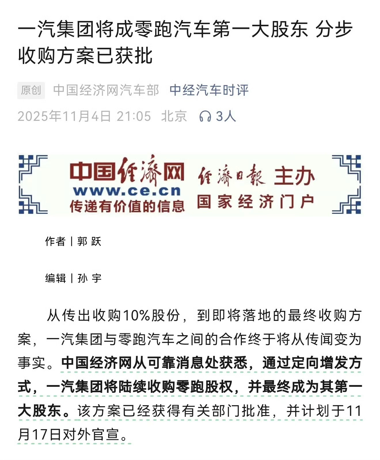 关于“一汽收购零跑”的消息,零跑官方已经辟谣了!