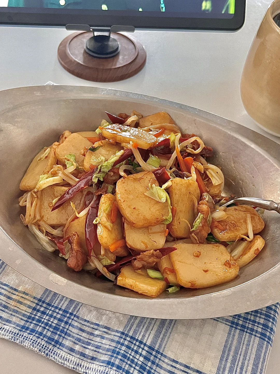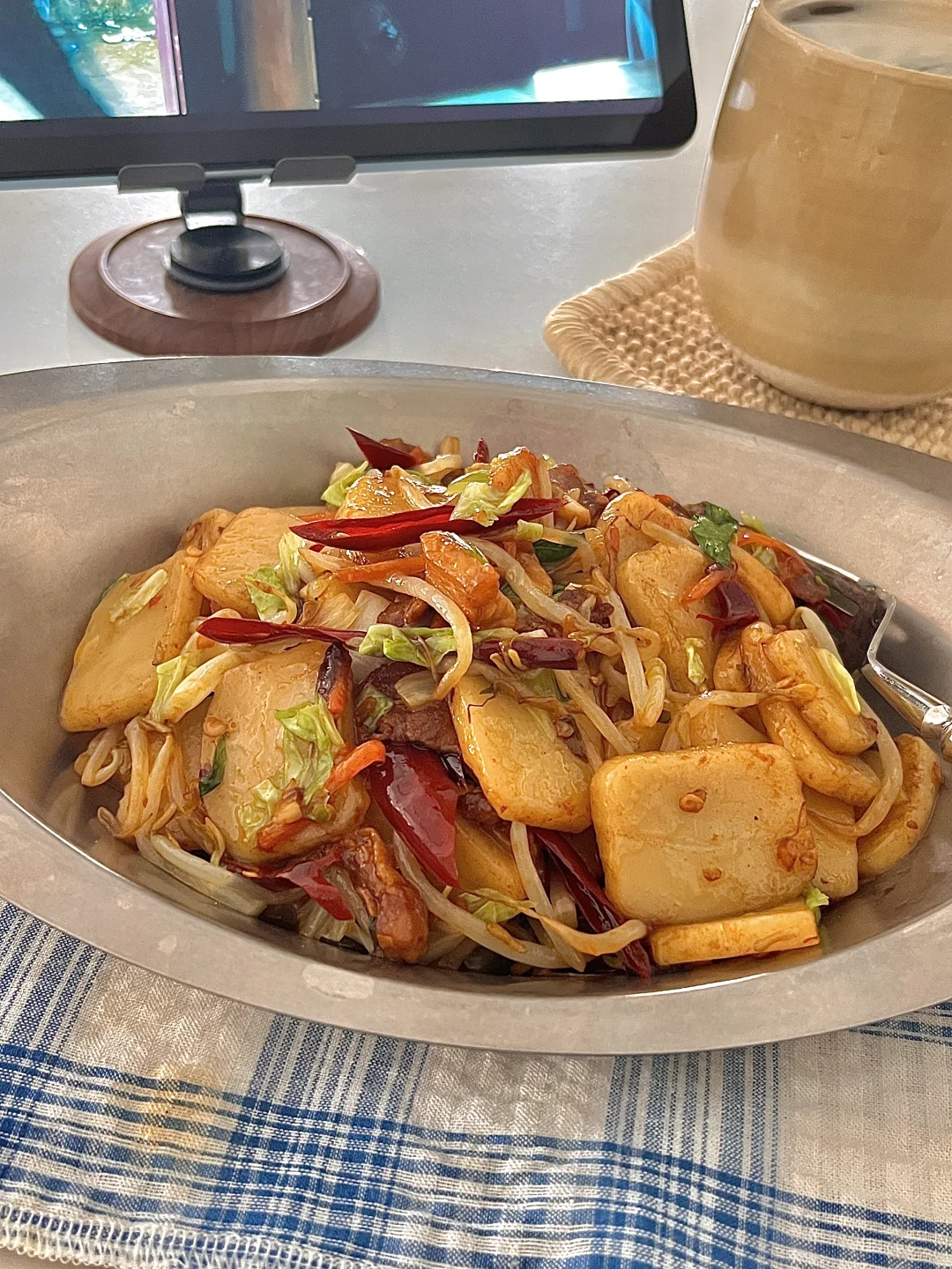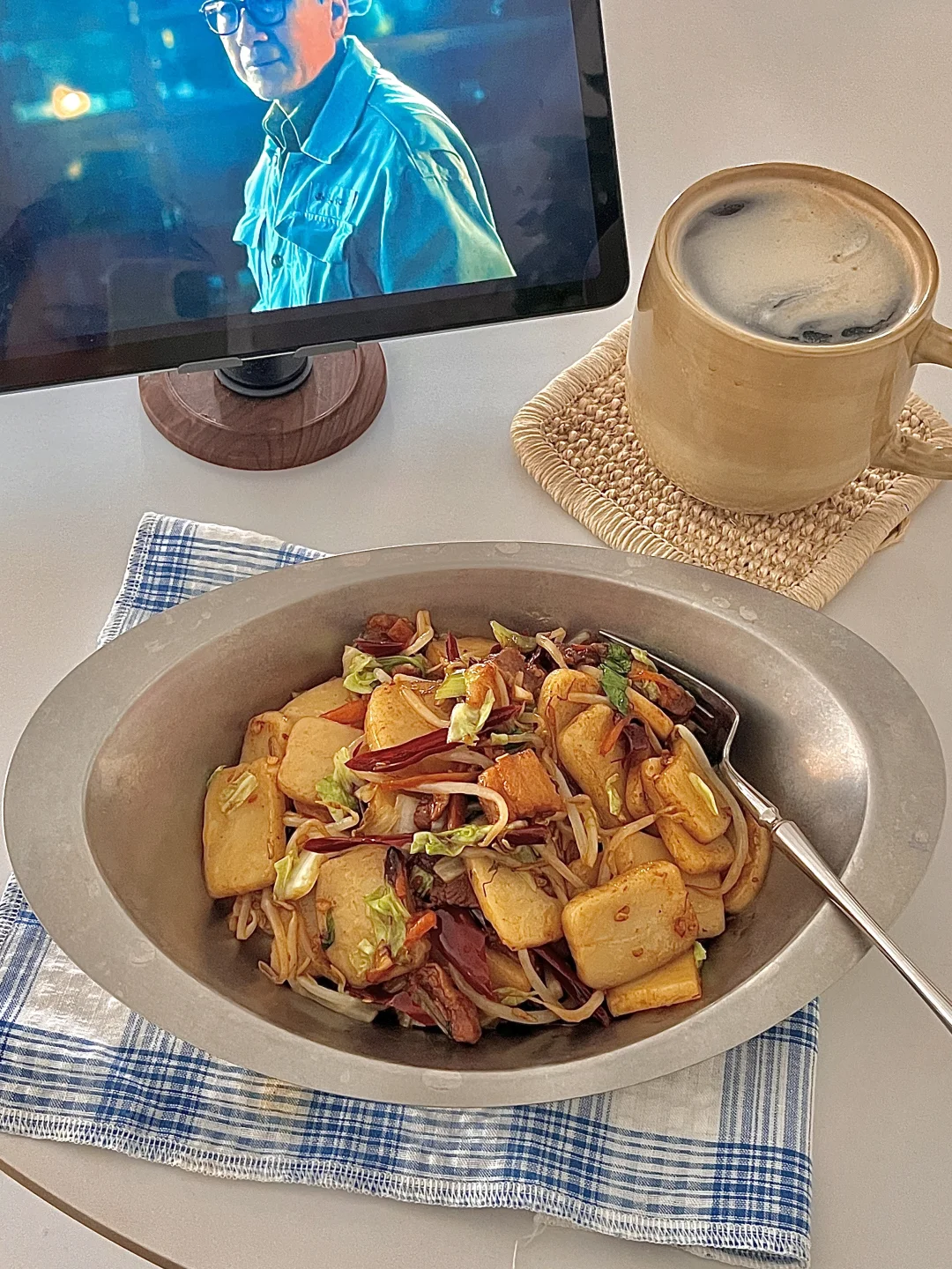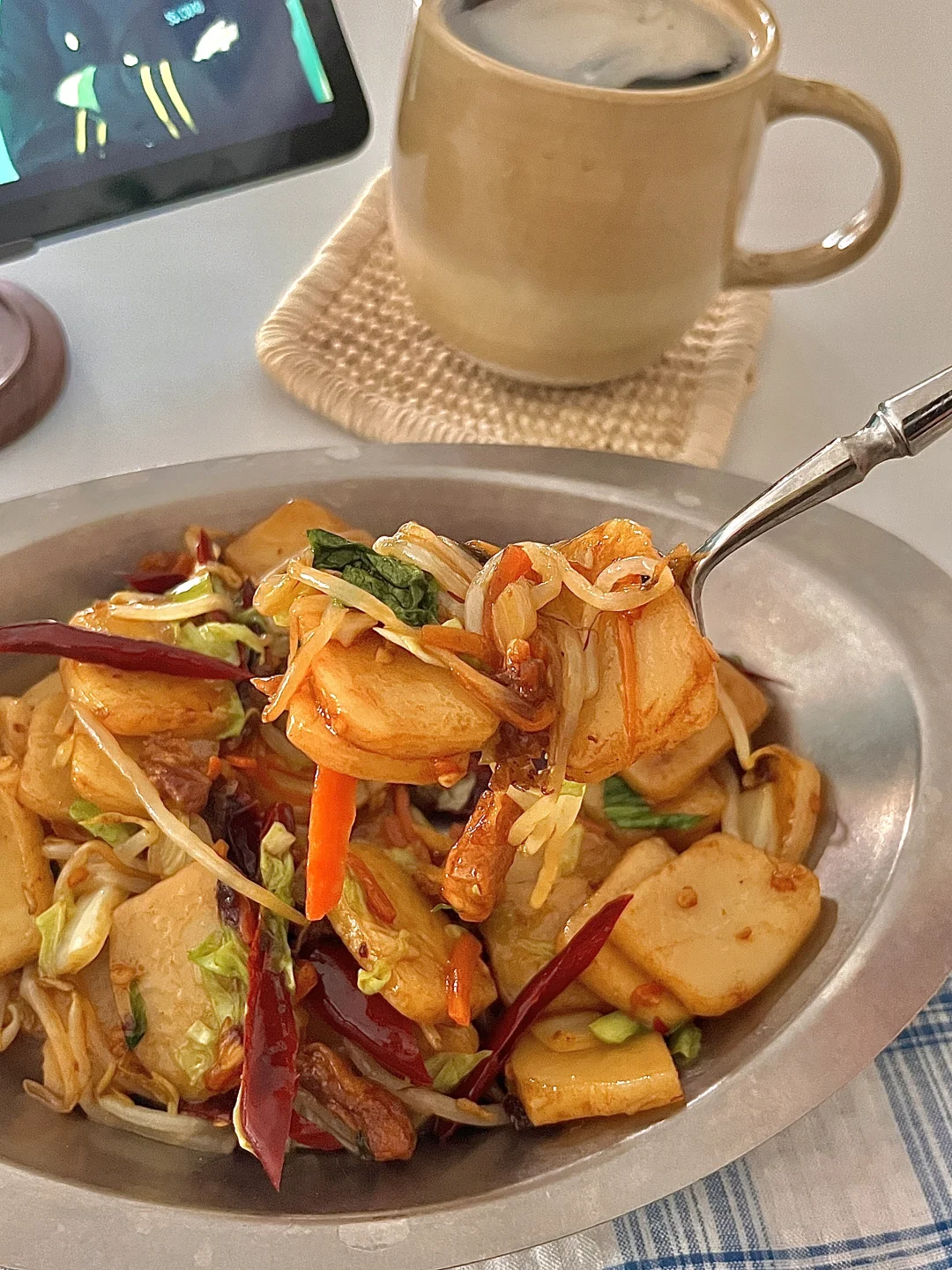 🍴今日份一人食: 五花肉片炒年糕 热美式 . 一到这季节就想吃糯叽叽的炒年糕,吃一次就爱上的程度,多多放自己喜欢的蔬菜🥬,味道真的秒杀路边摊,食材做法都很简单,爱吃糯叽叽的宝一定要去试试呀✌🏻