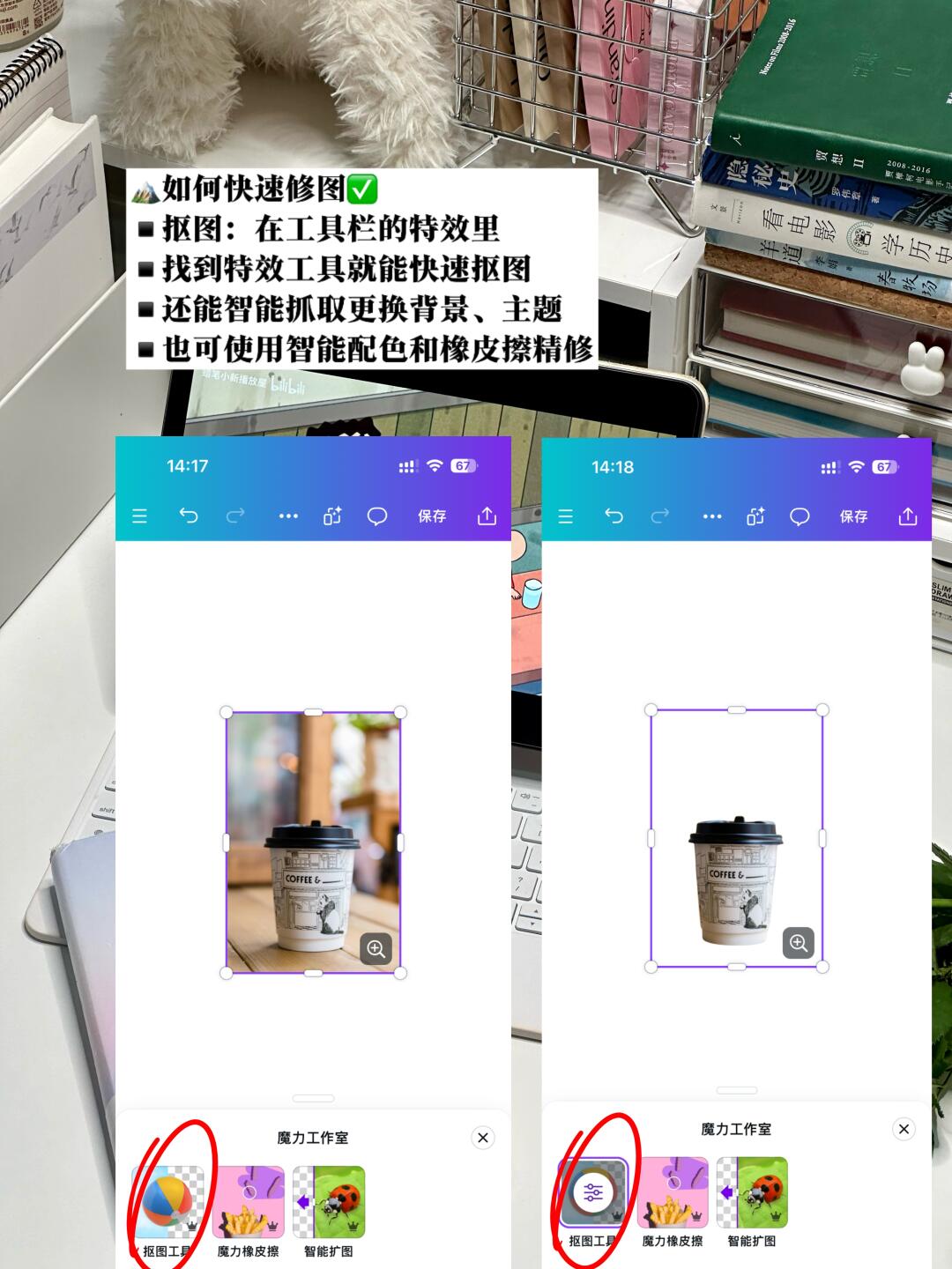 很多人做自媒体不会做创意图片,在Canva工具栏特效里选择【抠图工具】,就可用一键抠图功能精准抠出每根头发丝,并用智能抓取等更换背景和调整替换主题,让图片更加高大上,还可用魔力橡皮擦精修🏔️