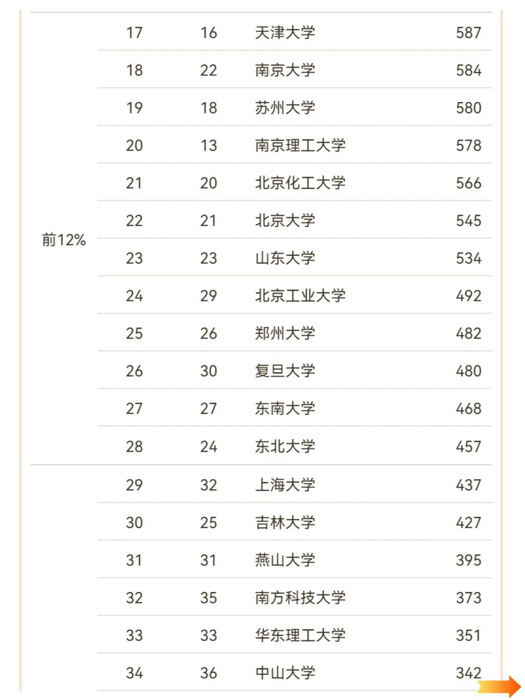 发布的是在该学科排名前50%的高校,“材料科学与工程”学科共有119所高校上榜。与2023年的榜单对比,我发现有些院校进步很明显: