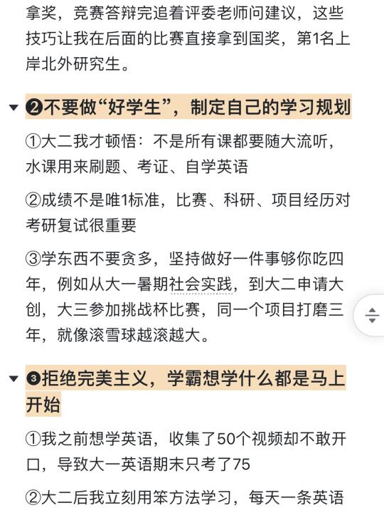 ②主动联系专业老师:大二主动找老师进入课题组,参与论文和大创,跟着学长学姐学做比赛,竞赛答辩完追着评委老师问建议,这些技巧让我在后面比赛直接拿到国奖,第1名上岸北外研究生。