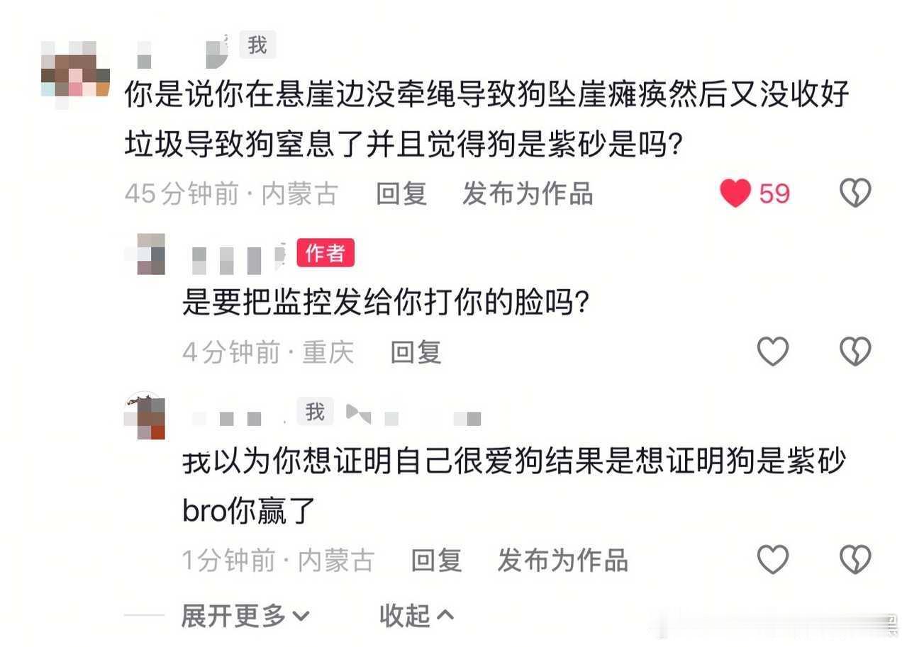 刷到一个博主不牵绳导致狗跳崖瘫痪然后又没收好垃圾导致狗叼真空袋窒息去世了,这个博主还觉得狗是紫砂……plq的🫘人也是一如既往的离谱,甚至此博主回怼膏烛的时候还在试图证明狗是紫砂(p1码住的地方都是狗狗的名字)