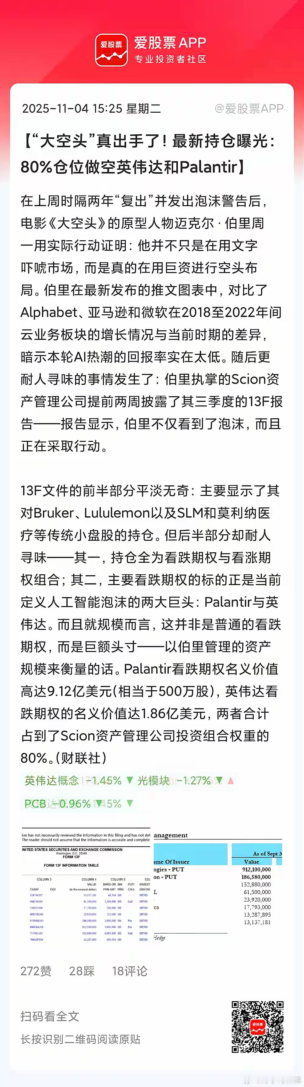 美国知名大空头大举做空AI,主要做空英伟达,资金差不多10亿美元!