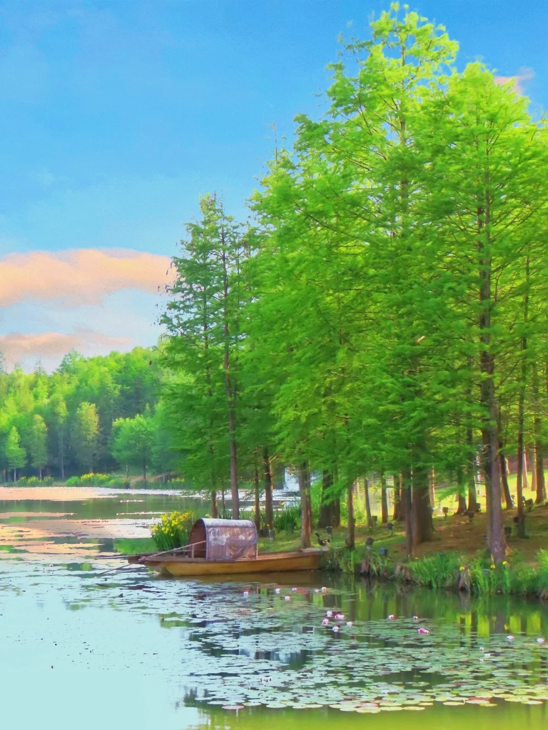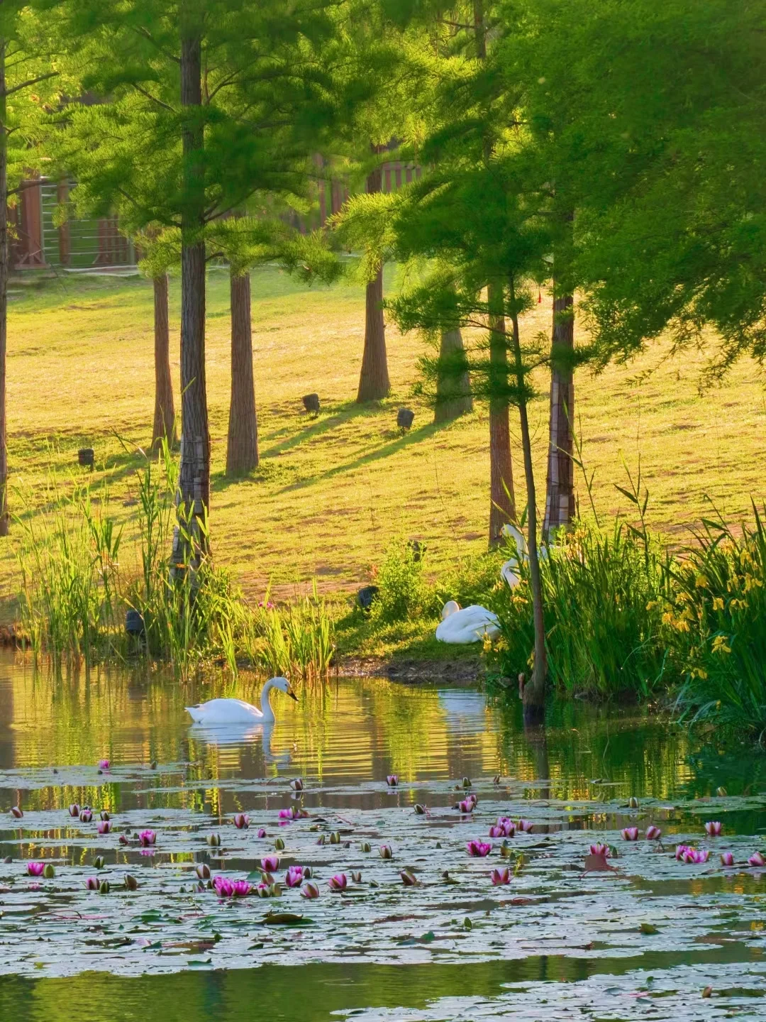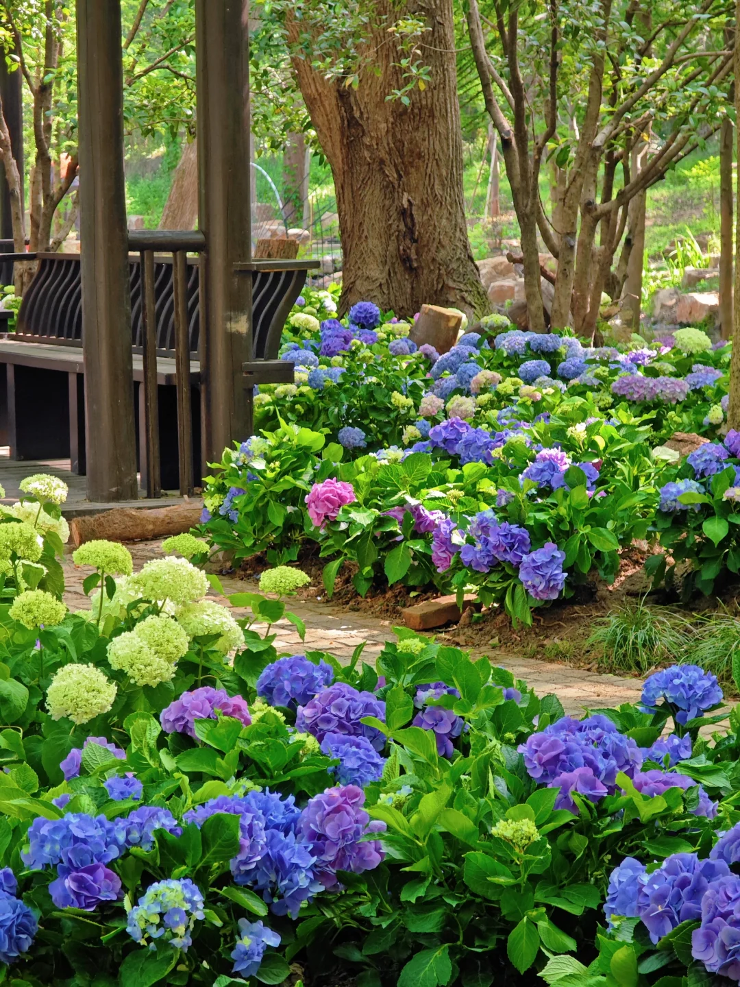 Hello大家,我是爱旅行爱拍照的- 太卷了,太卷了!花期本该5月的绣球无尽夏提前上线了! 中山植物园的绣球还没有动静,明孝陵燕雀湖旁的无尽夏已花开成海 每年春天都会来这里拍落羽杉仙境,这是第一次在燕雀湖旁看到绣球花海 燕雀湖的落羽杉也绿了,清晨的阳光洒落下来,真的美成了莫奈花园 - 📍南京明孝陵景区燕雀湖3号门,绣球花具体位置在3号门进去右手边 -