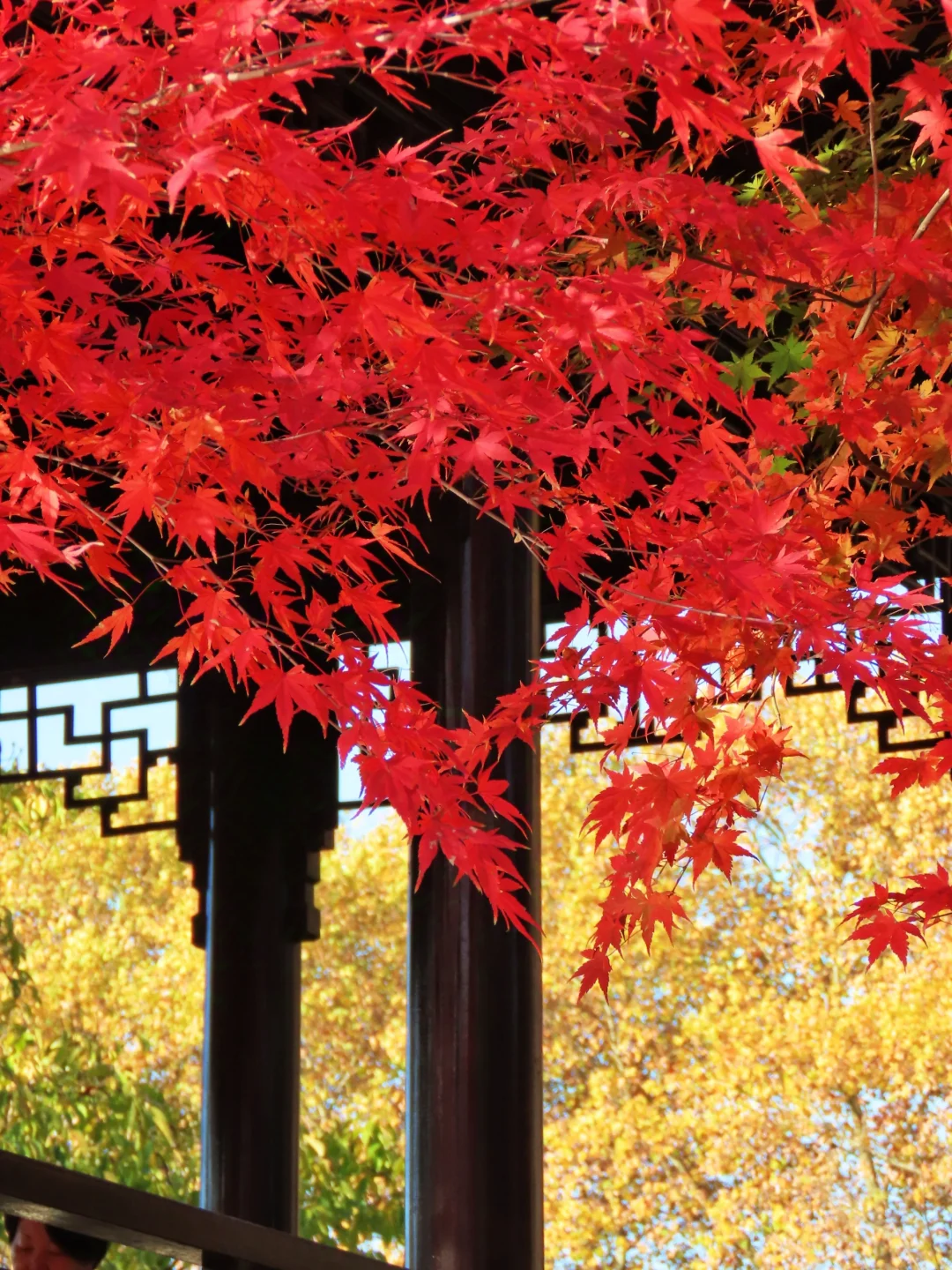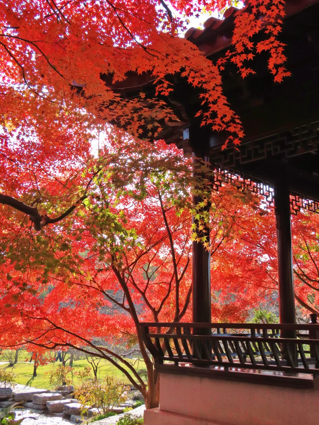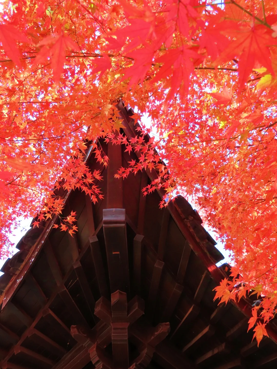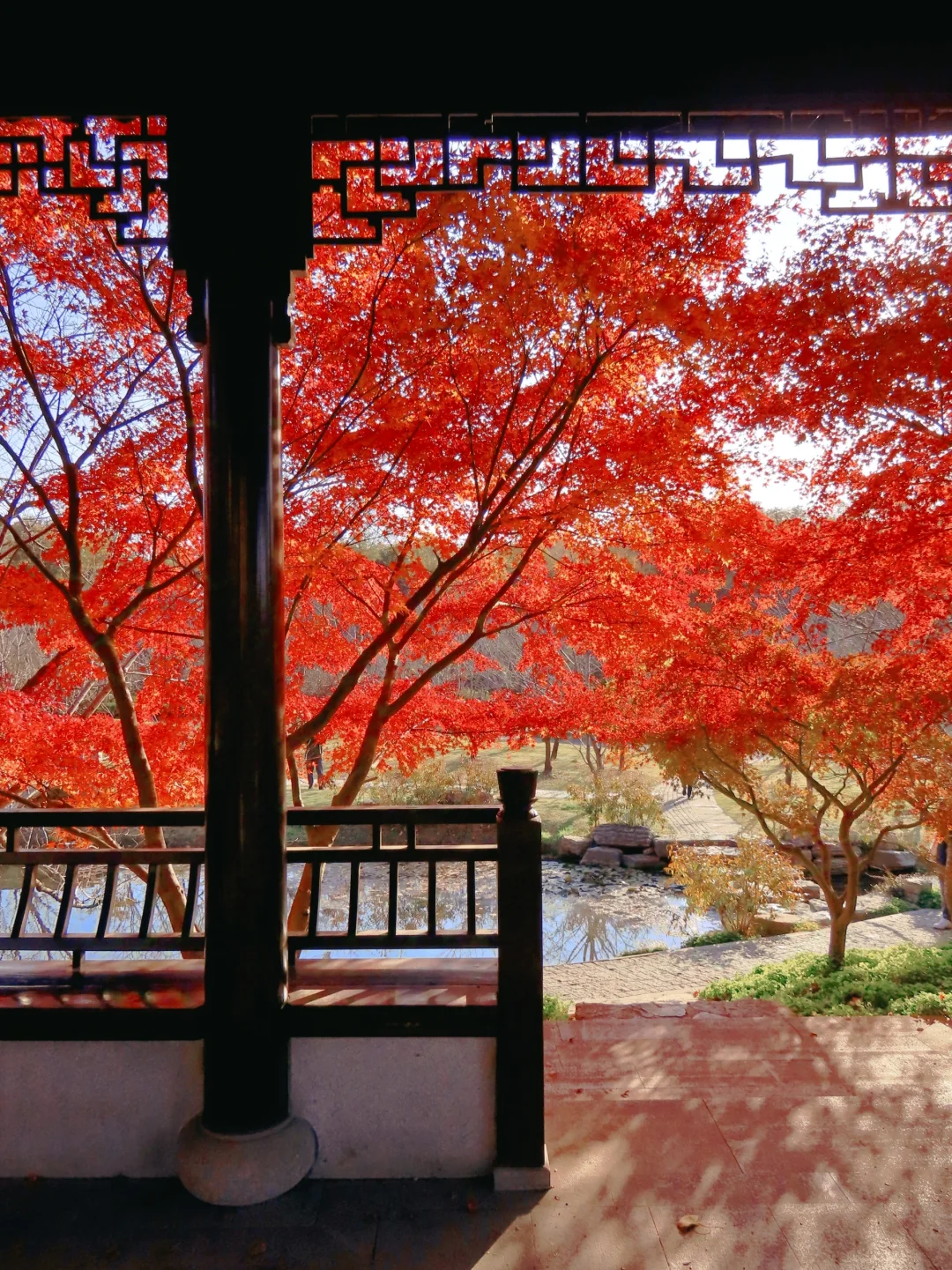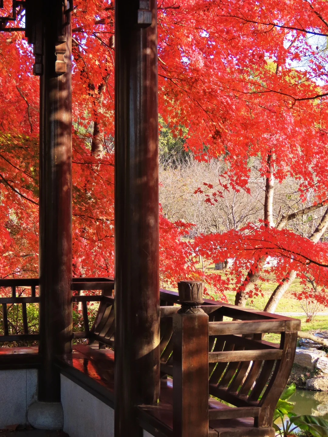 虽然只有几棵枫树,但坐在亭子里赏枫,氛围感绝了