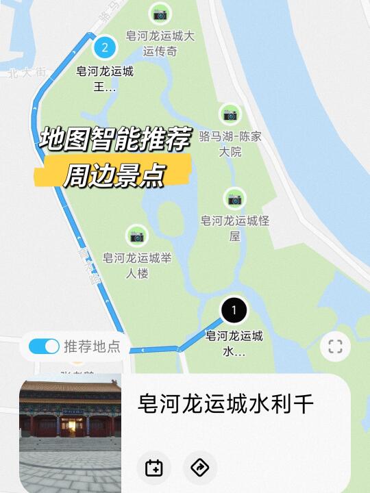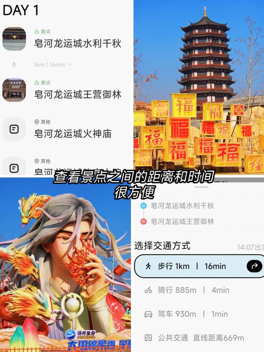 👉地图形式一目了然,可以查看景点之间的距离和时间,还可以智能推荐周边景点